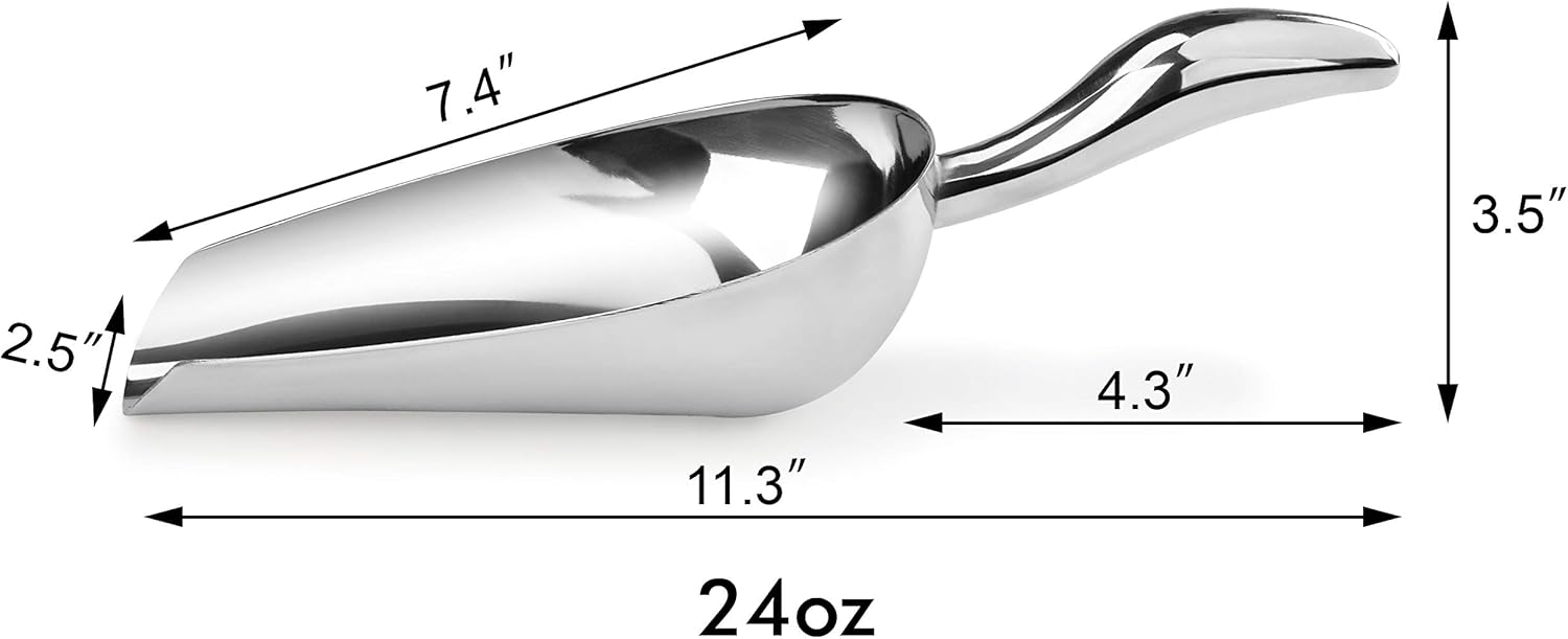 - Commercial-Grade Stainless Steel utility scoop great for ice, sugar, flour, popcorn, and candy.