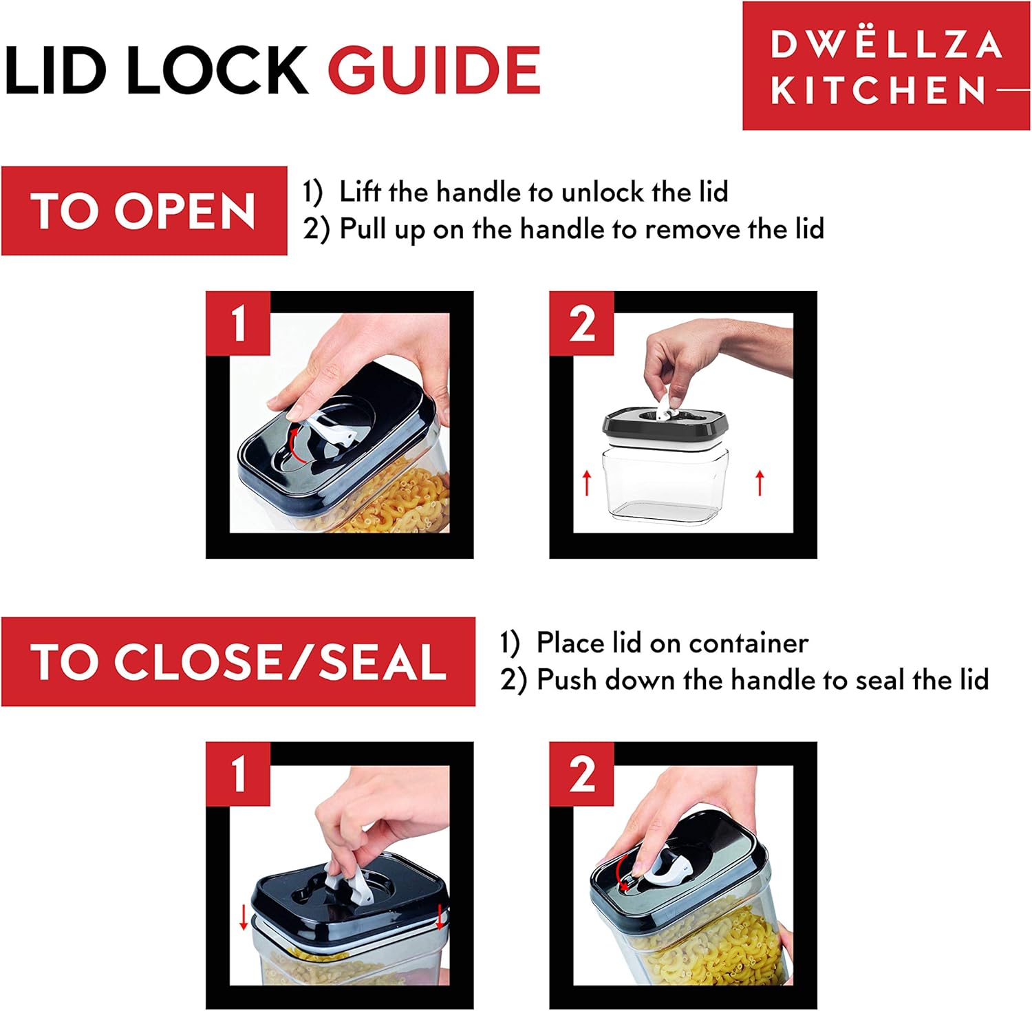 - Enjoy Your Meal With Fresh Food: Keep Your Foods Fresh with Our Easy to Use Airtight Lid-Lock Mechanism. No Dealing with Flimsy Pumps. Our Pantry Storage Containers for Organizing Create an Airtight Seal by Simply Pushing Down the Ring on The Lid. Lift the Ring and Push Up Whenever You Want to Open the Airtight Containers. The Airtight Seal Is So Secure You Can Store Liquids Without Ever Worrying About Leaks!