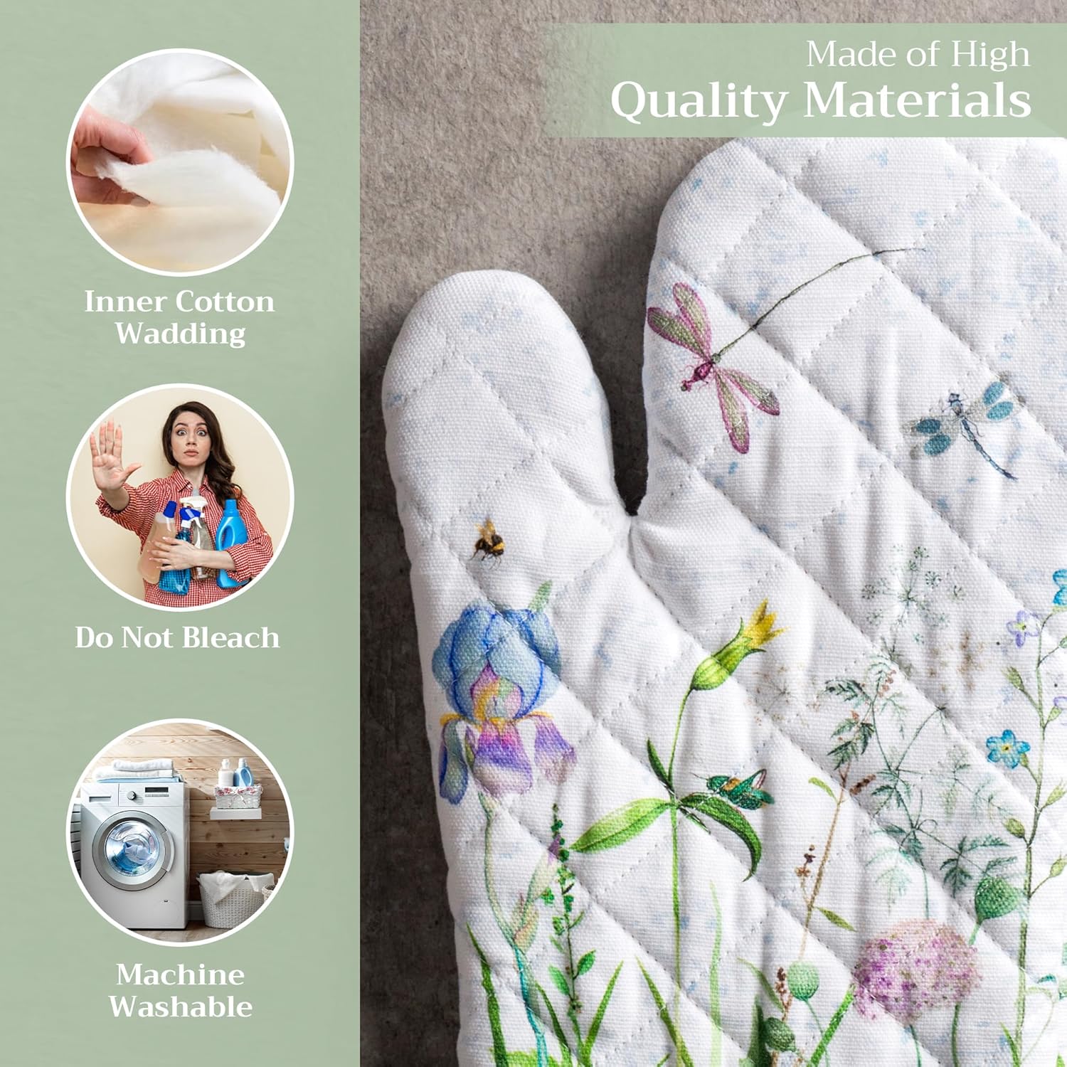 - 100% Quilted cotton: Crafted from thick, durable quilted cotton, this heat resistant oven mitt provides a soft feel, safe handling, and lasting performance. A must-have kitchen accessory for everyday cooking, roasting, or baking tasks