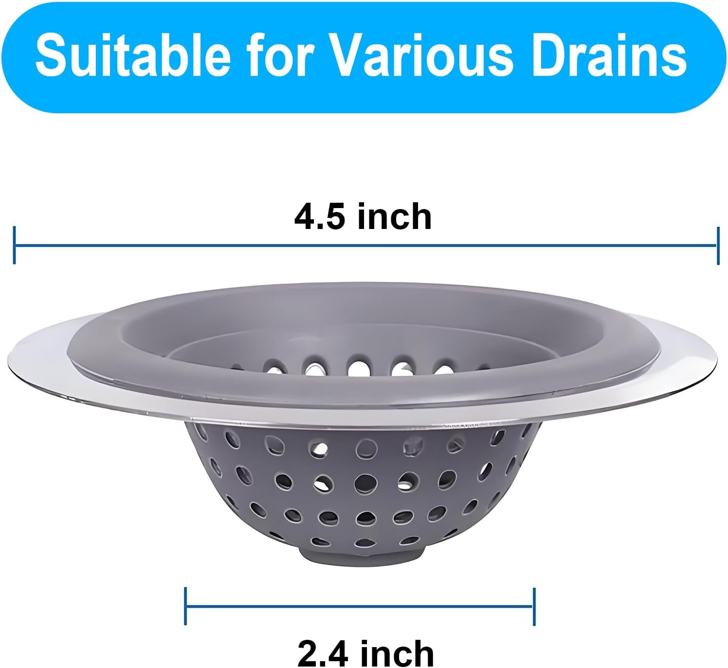 2 Pack Kitchen Sink Drain Strainer Silicone Stainless, Drain Protector,Prevent Clogging, Large Wide Rim 4.5 inch Diameter, Tools Home Improvement (Gray)