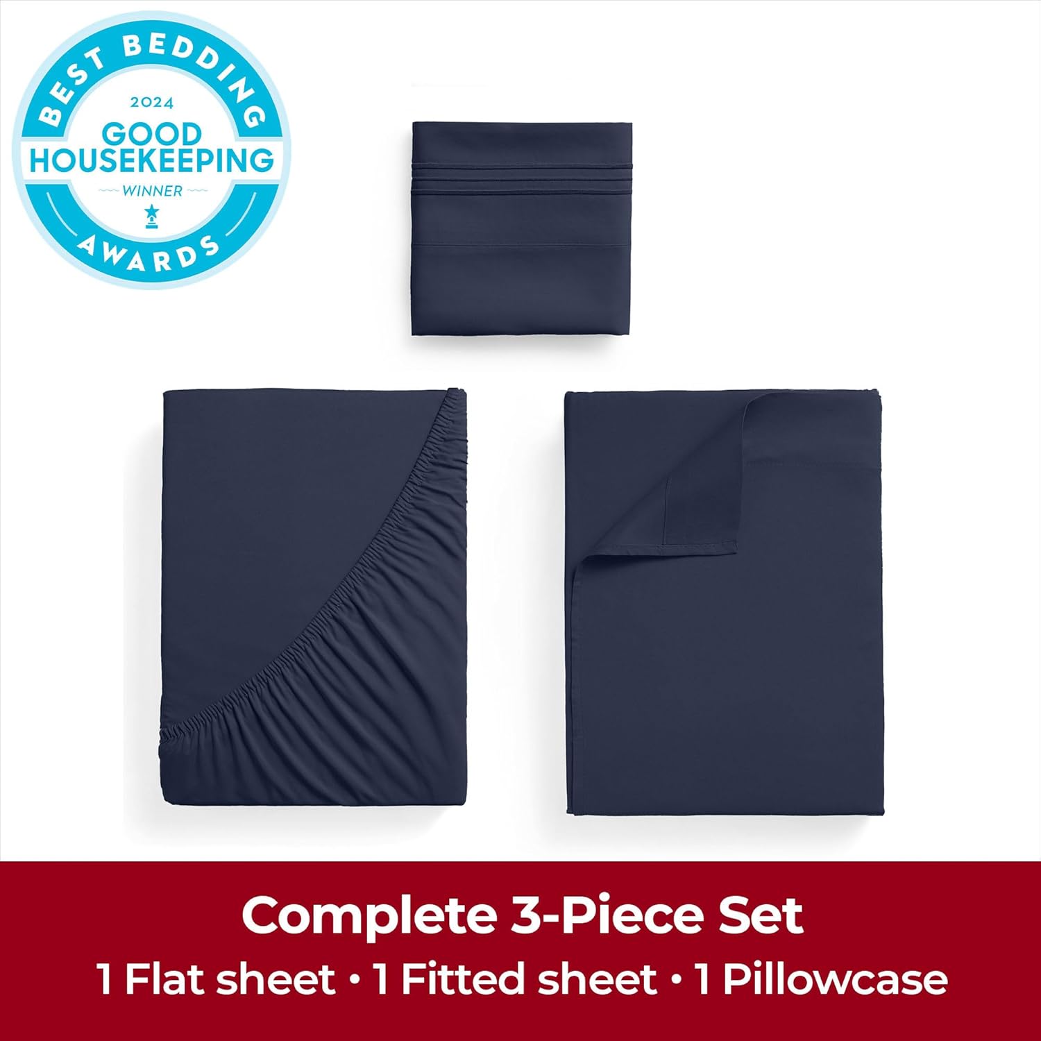 Mellanni Extra Deep Twin XL Sheets - 3 PC Iconic Collection Bedding - Hotel Luxury, Ultra Soft, Cooling Bed Sheets - Wrinkle, Fade, Stain Resistant (Twin Extra Long, Navy Blue)