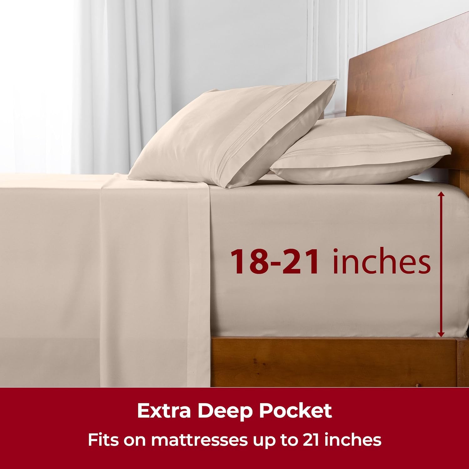 Mellanni Extra Deep Twin XL Sheets - 3 PC Iconic Collection Bedding - Hotel Luxury, Ultra Soft, Cooling Bed Sheets - Wrinkle, Fade, Stain Resistant (Twin Extra Long, Beige)
