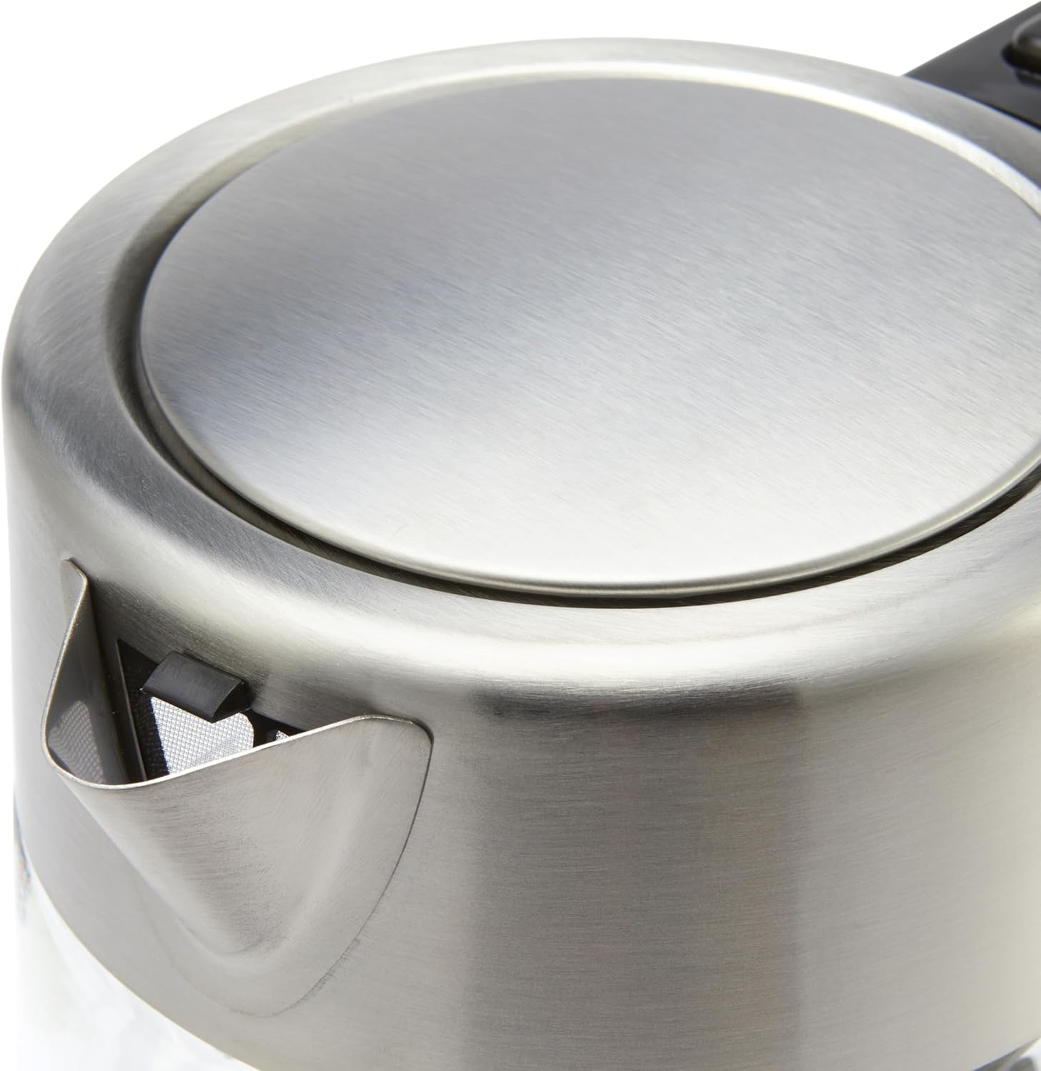 Amazon Basics Electric Kettle with Glass Carafe for Tea and Coffee, BPA-Free, Fast Boiling, Auto Shut-Off, 1 liter , 1500W, Glass and Steel