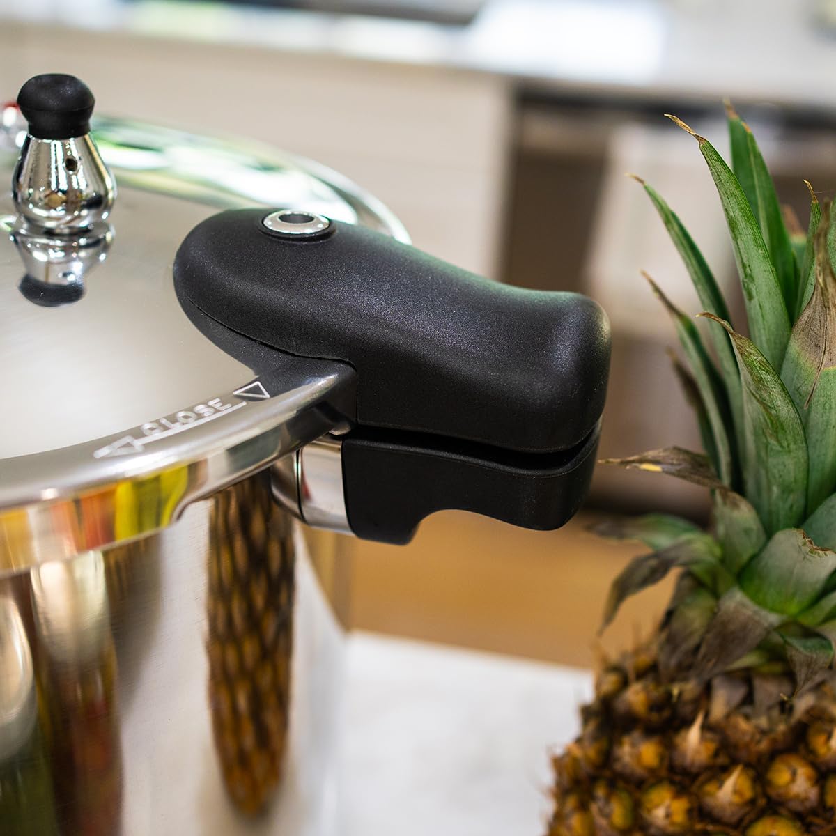 - In addition a spring safety device prevents the pressurization of the cooker before being securely closed, and a sure-locking lid system prevents opening the lid when the cooker is pressurized