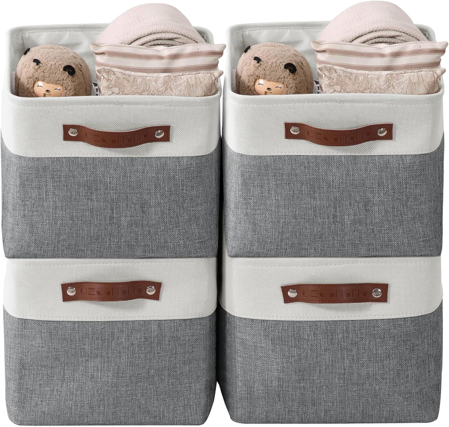 - Large Storage Basket: Set of 4 for better value and shopping convenience. Each storage basket measures: 15” (L) x 11” (W) x 9.5” (H) / (38cm x 28 cm x 24 cm). DECOMOMO's decorative storage boxes can be used in bedroom, living room, kitchen, office, closets, and cabinets.