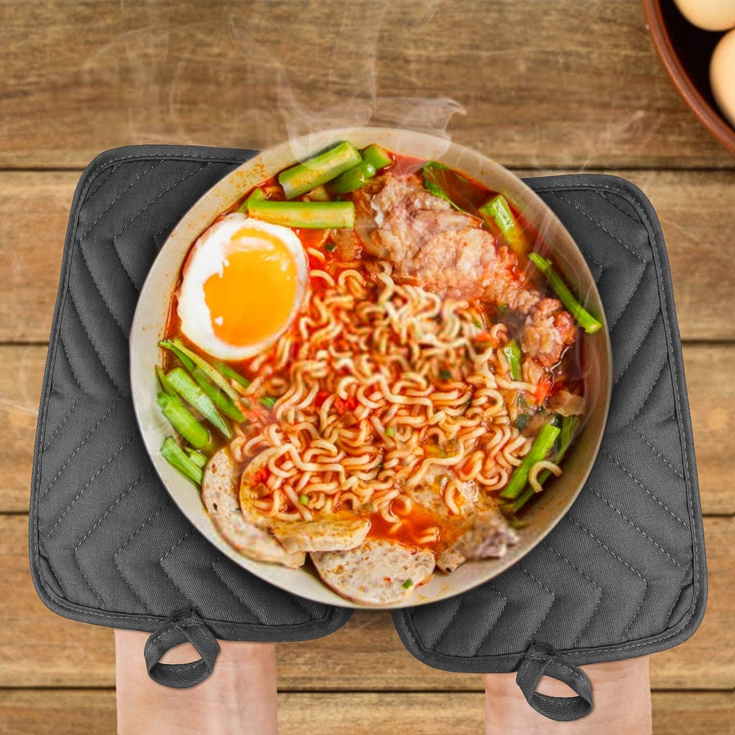 - Simple Design and Durable -- GROBRO7 hot pads made of cotton with size 6.9 x 8.9 inch, gray minimalist stylish design with pockets, heat-resistant, machine washable, save your time and energy!