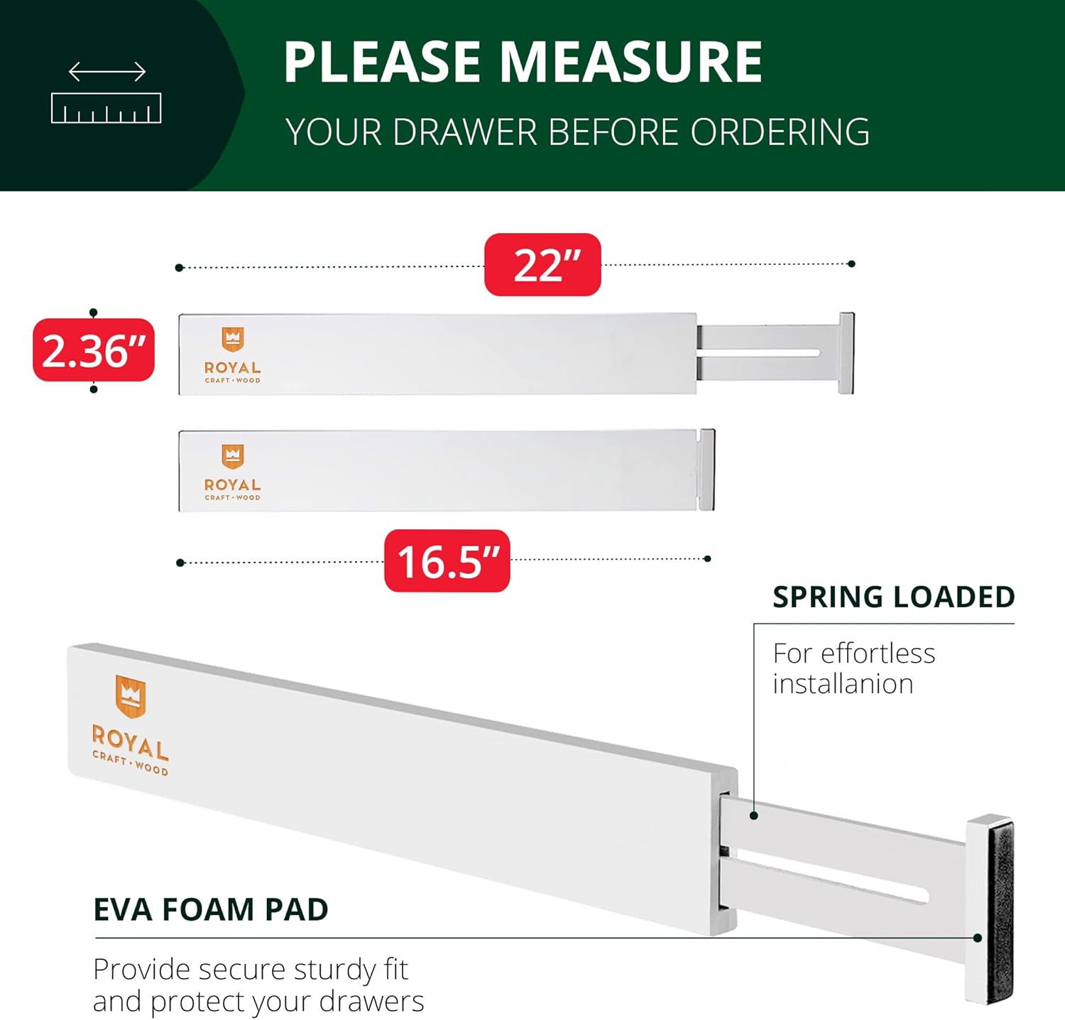 - ✅ MEASURE YOUR DRAWER BEFORE PURCHASE: Please be aware that the Royal Craft Wood Drawer Divider Organizer is a bit deeper and larger than some kitchen drawers. We kindly ask that you MEASURE your home drawer prior to purchase to ensure that this product is a good fit. Please ensure that your drawer space intended to be used with the drawer organizer is LARGE, between 17” and 21” wide for a guaranteed, comfortable fit when fully expanded