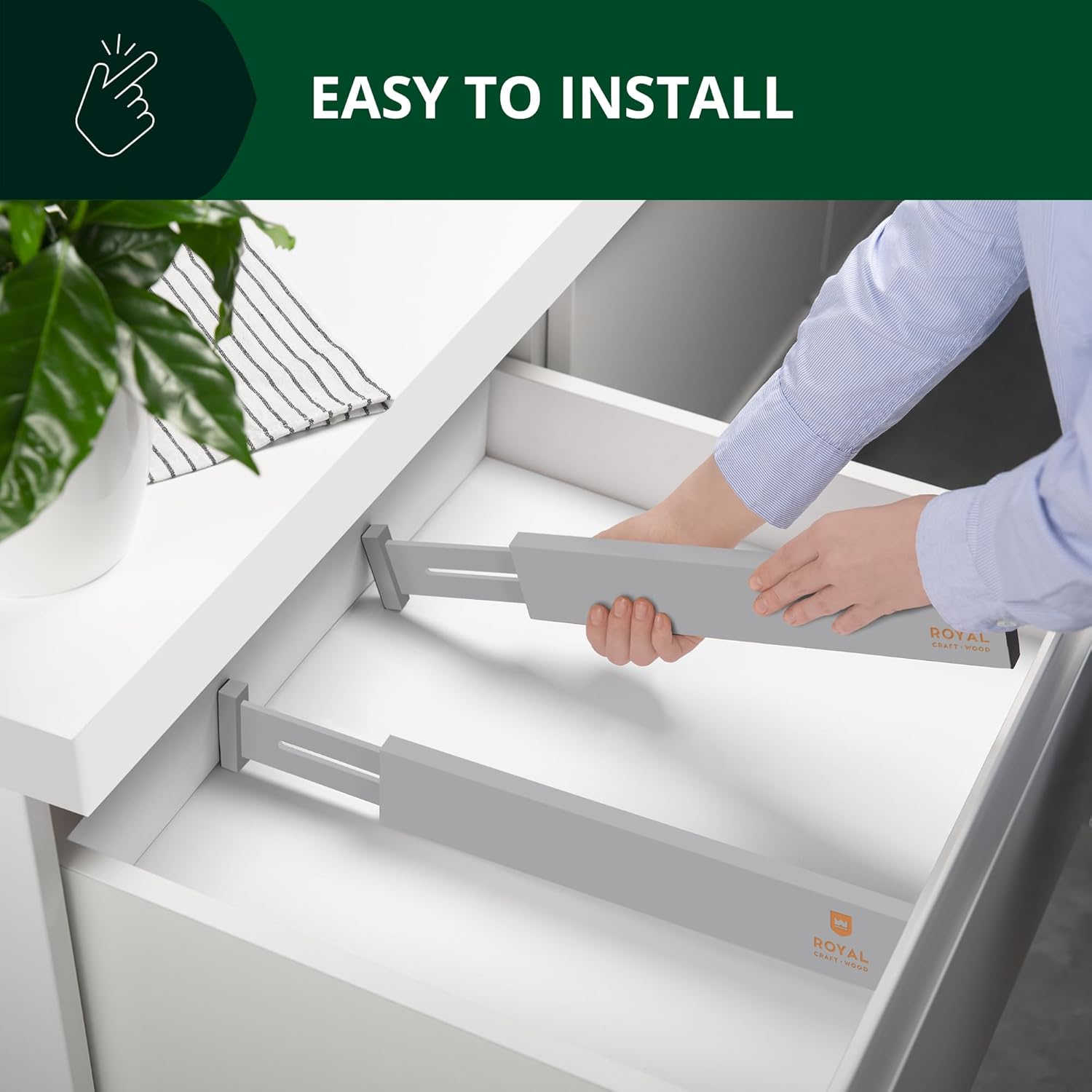 ROYAL CRAFT WOOD Adjustable Bamboo Drawer Dividers Organizers - Expandable Drawer Organization Separators For Kitchen, Dresser, Bedroom, Bathroom and Office, 4-Pack (Large (up to 22")) (Gray)
