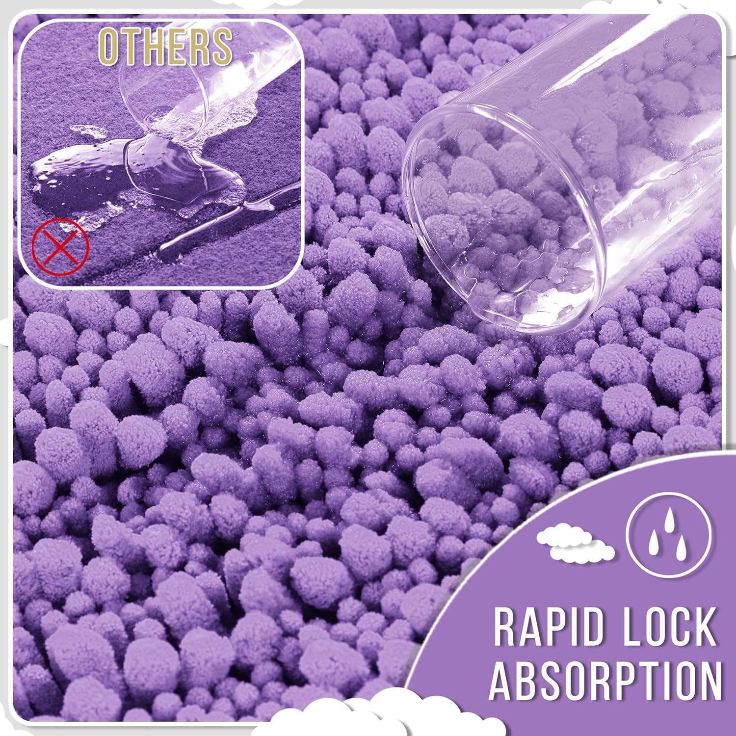 Yimobra Large Bathroom Rugs Non Slip Washable 36x24 Inch - Ultra Soft Absorbent Chenille Bath Mat, Quick Dry Shaggy Floor Carpet for Tub Shower, Lavender Home Decor Accessories
