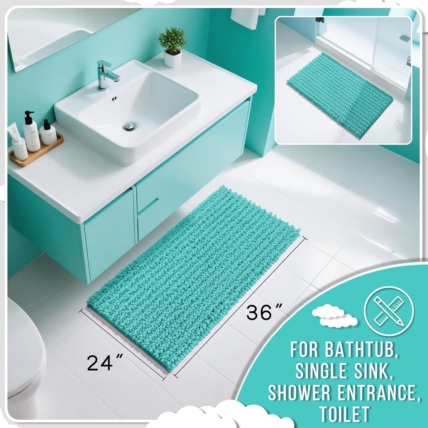 Yimobra Large Bathroom Rugs Non Slip Washable 36x24 Inch - Ultra Soft Absorbent Chenille Bath Mat, Quick Dry Shaggy Floor Carpet for Tub Shower, Lake Blue Home Decor Accessories