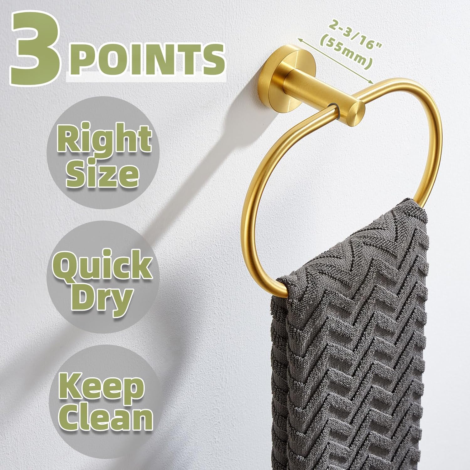 - BROADEN RING DESIGN: 6.97" (17.7 cm) spacious hanging area, wide enough to hold hand towel fully. Enclosed design protects hand towels from falling off
