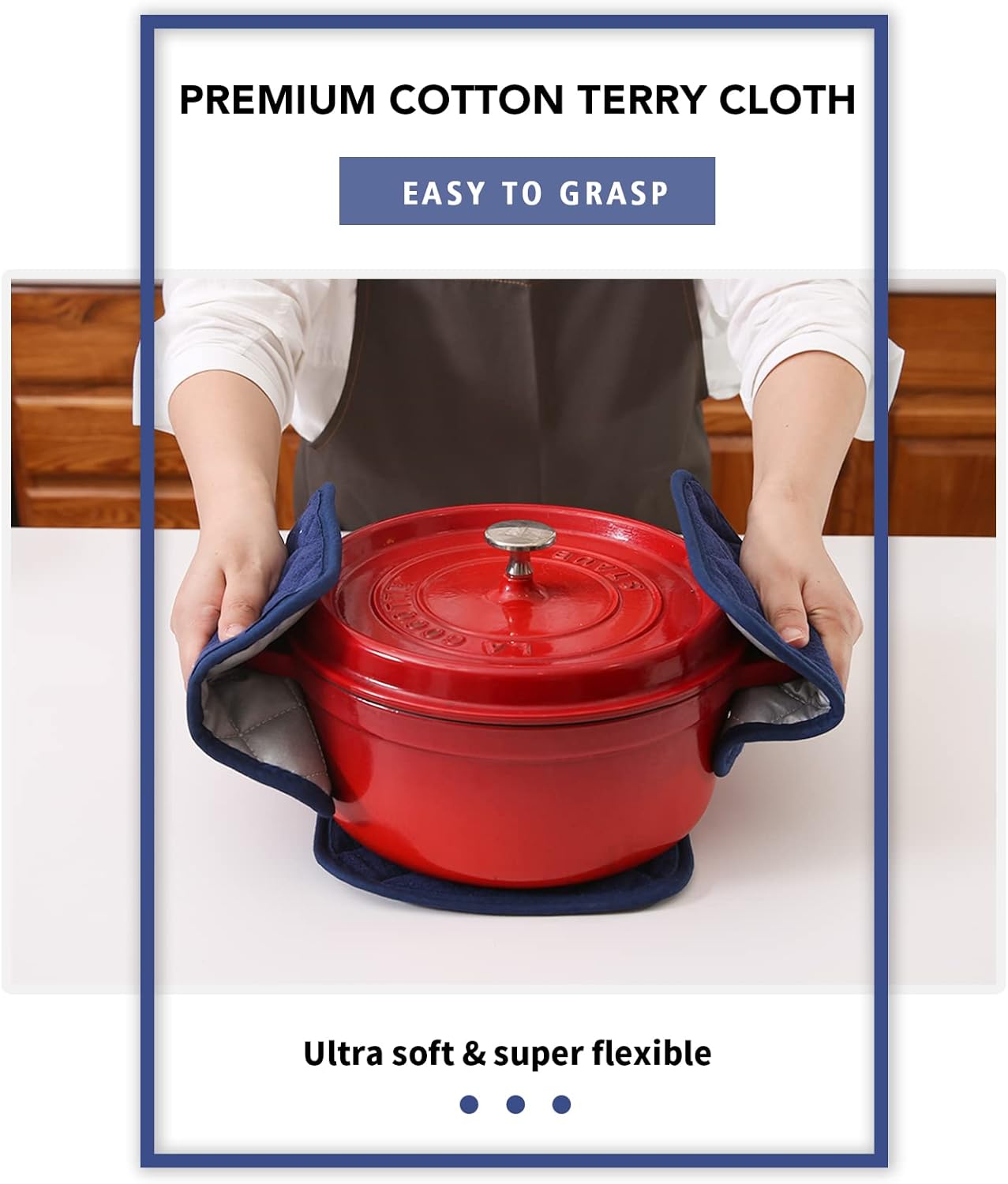 - QUILTED AND PADDED - Heat resistant up to 400 degrees allowing safe removal of baking dishes and cast iron from the oven and hot pots from the stove.