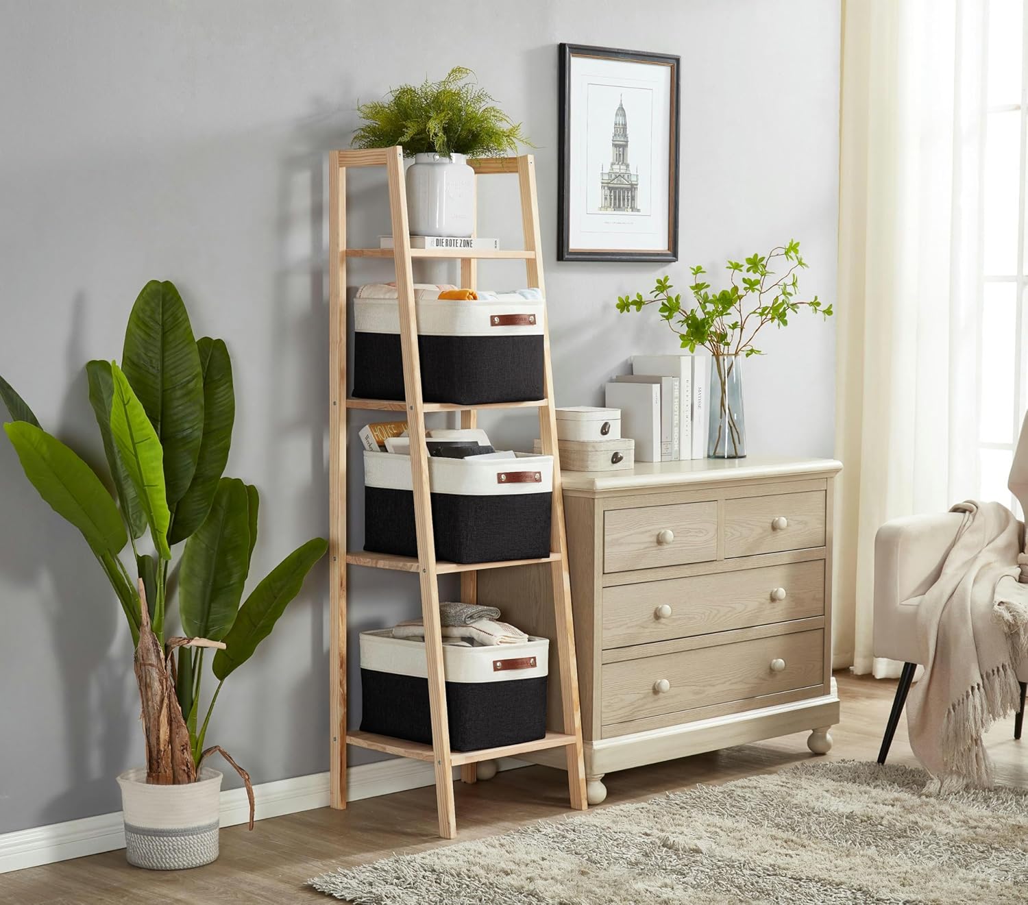 DECOMOMO Storage Baskets for Shelves - Fabric Storage Bins, Linen Closet Organizers and Storage (Black & White, Large - 3 Pack)