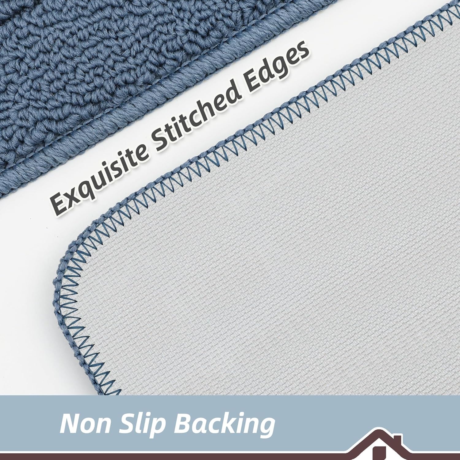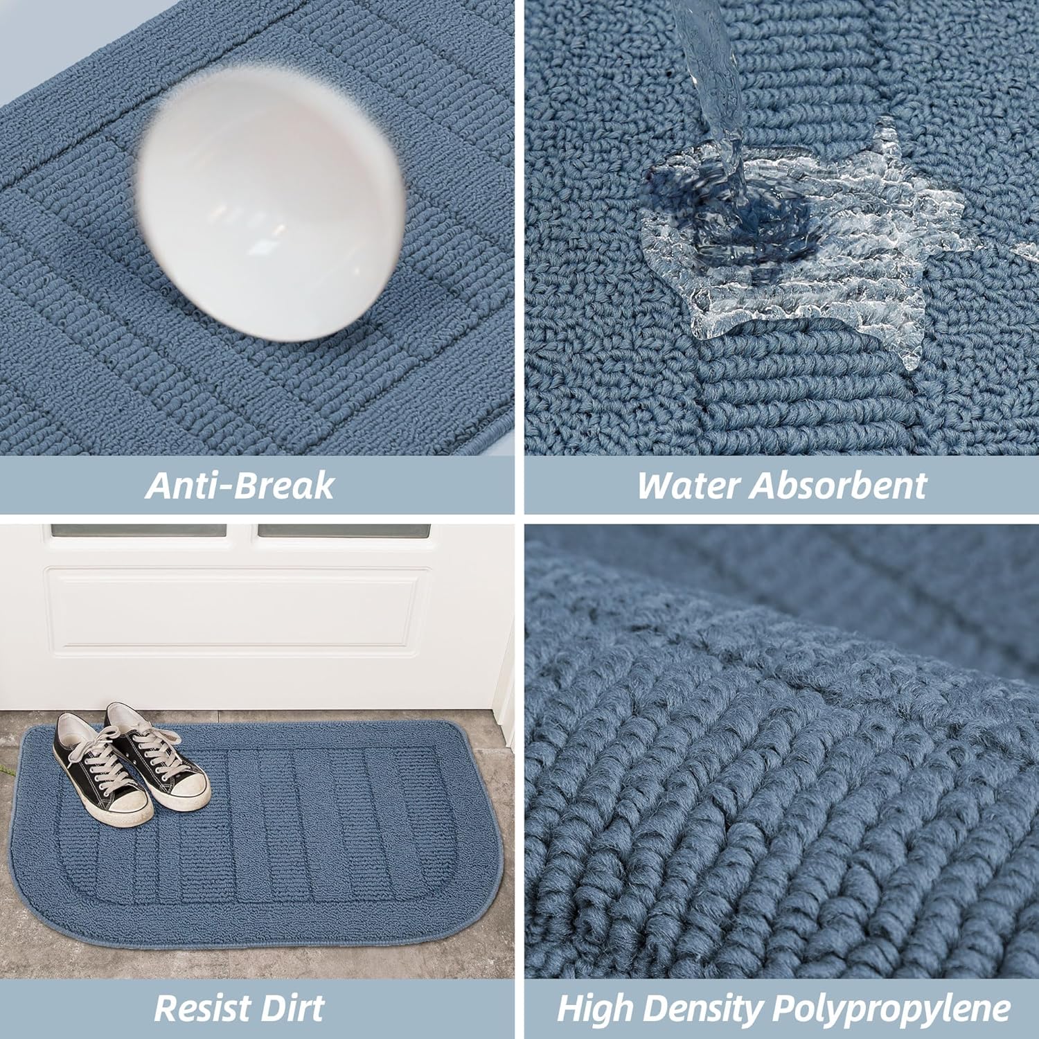 BEQHAUSE 30x18 Inch Kitchen Rug Mat Durable Kitchen Rugs Non-Slip Washable Absorbent Kitchen Mats for Floor Dirt-Resistant Semicircular Kitchen Mat (Blue)