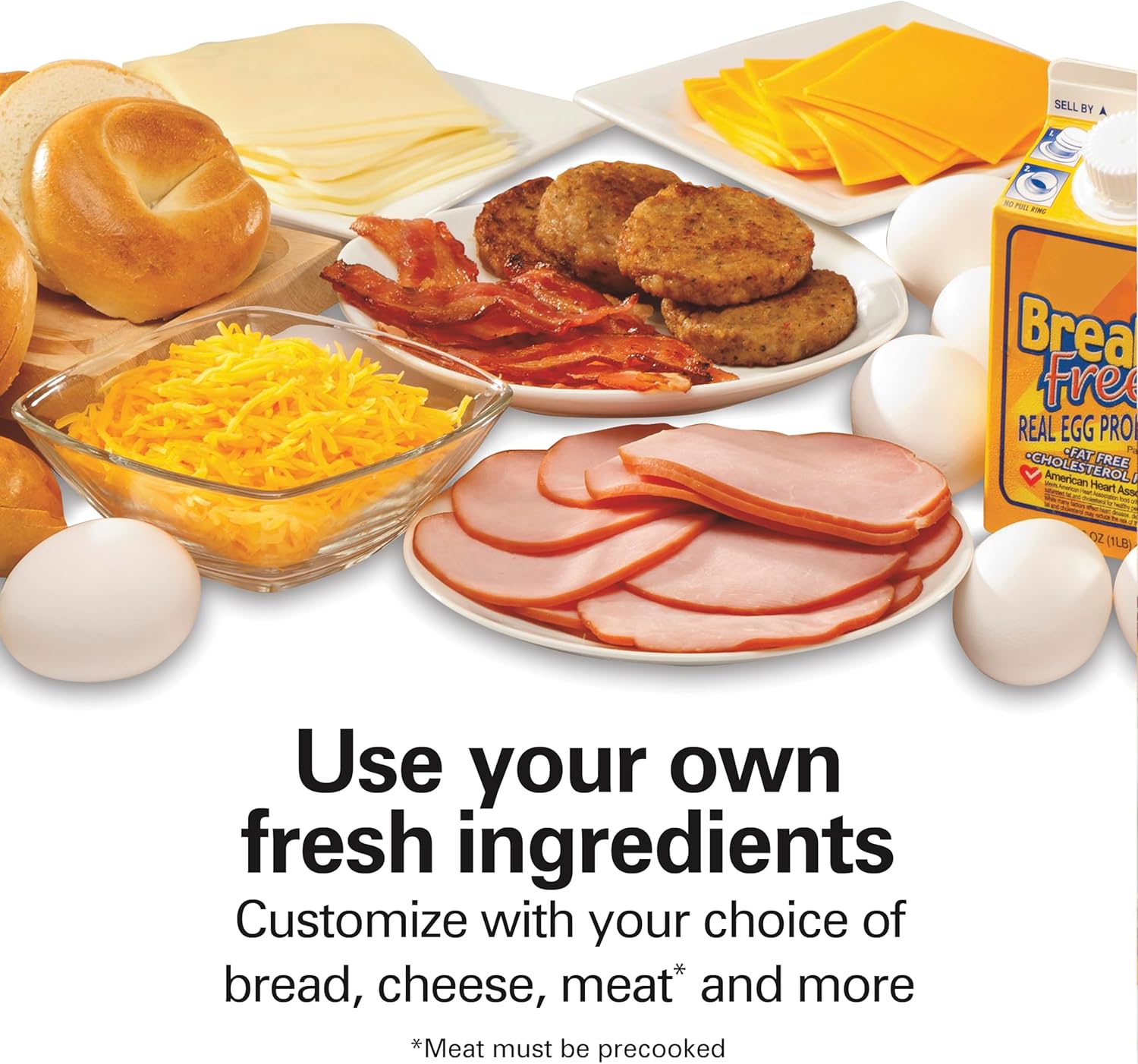 - USE YOUR OWN FRESH INGREDIENTS: Use this breakfast sandwich maker to completely customize your sandwich with your choice of bread, cheese, eggs, meats, and much more.