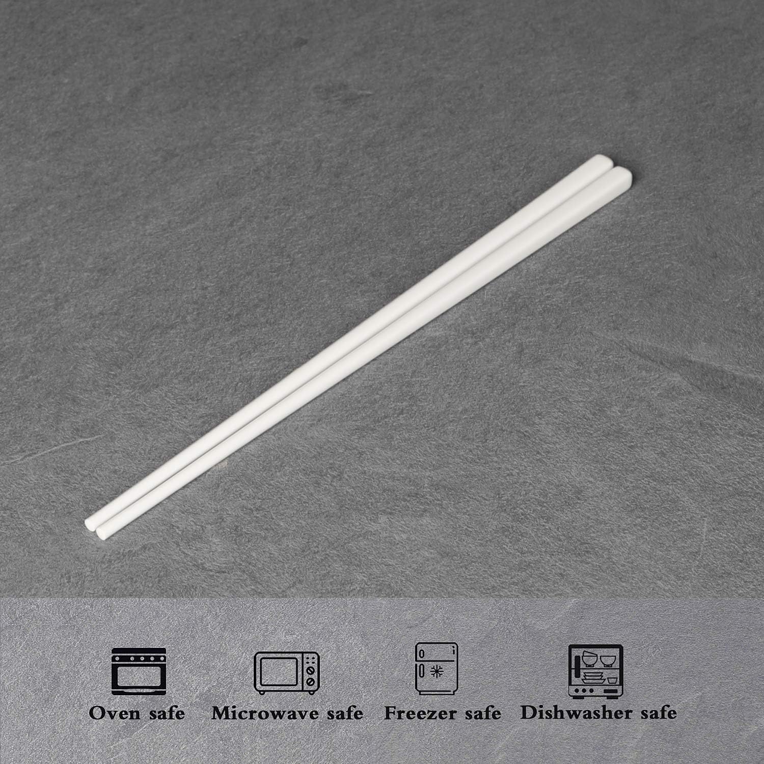 LEETOYI Ceramic Chopsticks Set of 5, Porcelain Chinese Chopsticks Easy To Clean, 9.6-Inch (White)