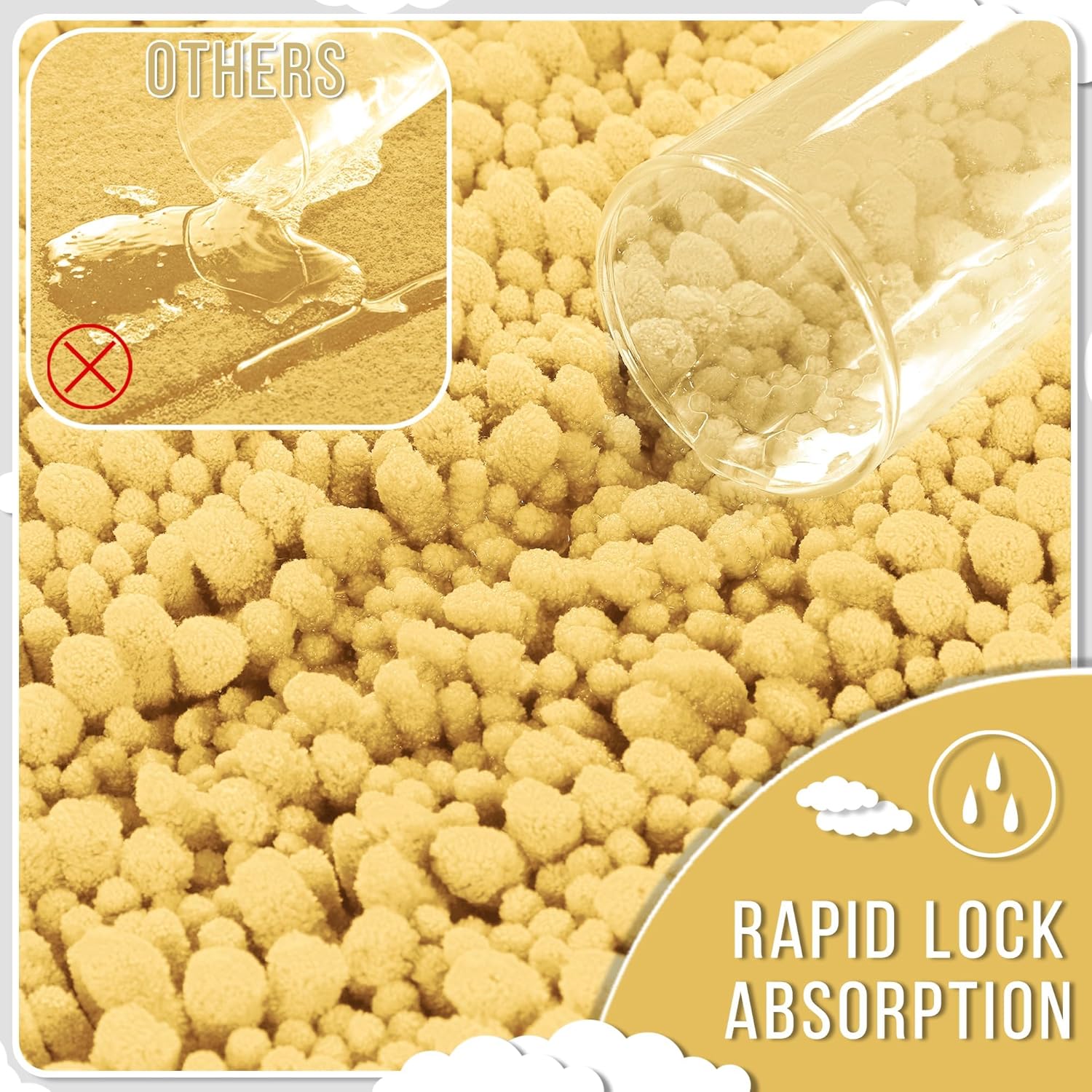 Yimobra Bathroom Runner Rug 55x24 Inch - Extra Long Non Slip Chenille Bath Mat, Soft & Absorbent, Machine Washable Shaggy Hallway Carpet for Vanity Tub Shower, Yellow Home Decor Accessories