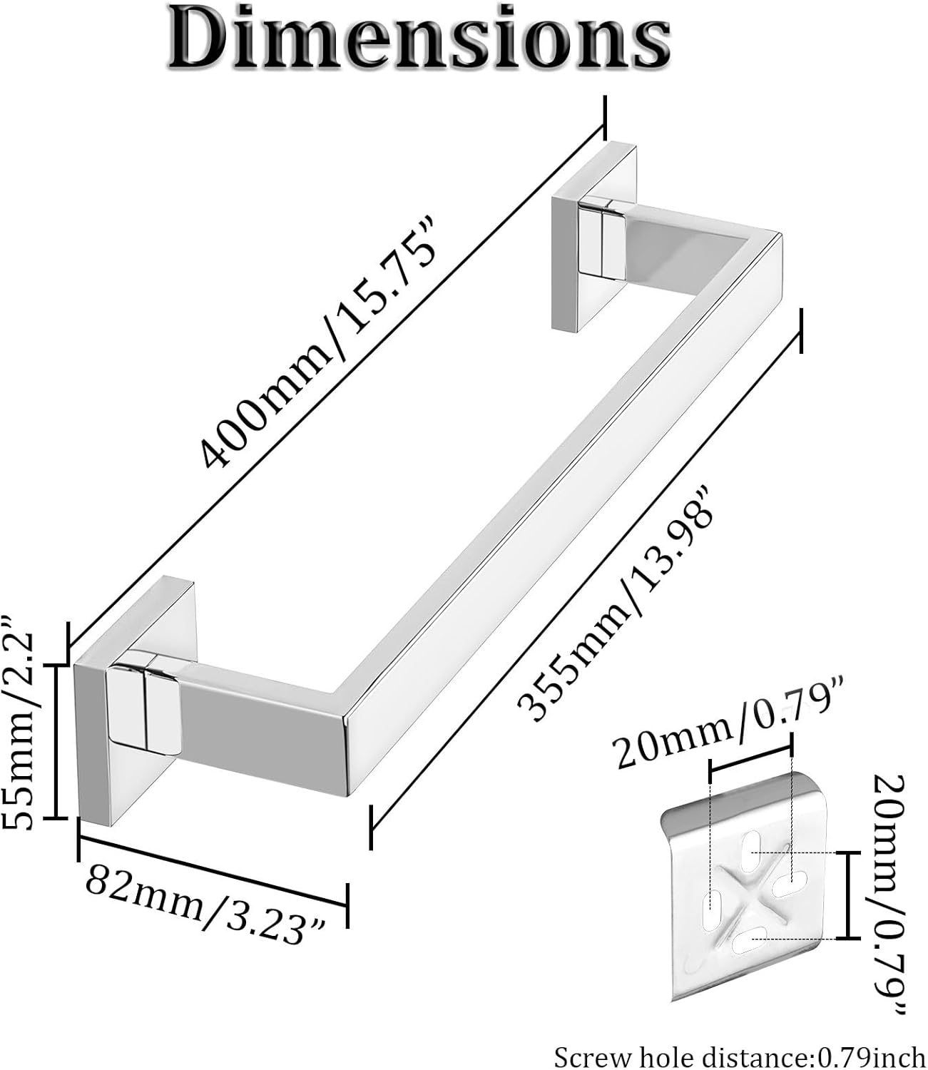 - 【Measure Before Buying】Dimensions 15.75''Lx2.2''Wx3.23''H, Useable Length 13.98 Inch towel hanger. 2.8 Inch Separation Distance from Wall - Enough space for quick drying, hanging towel quickly.No need to fold your towel any more.If you have any questions about the polished chrome towel bar, please feel free to contact me at any time
