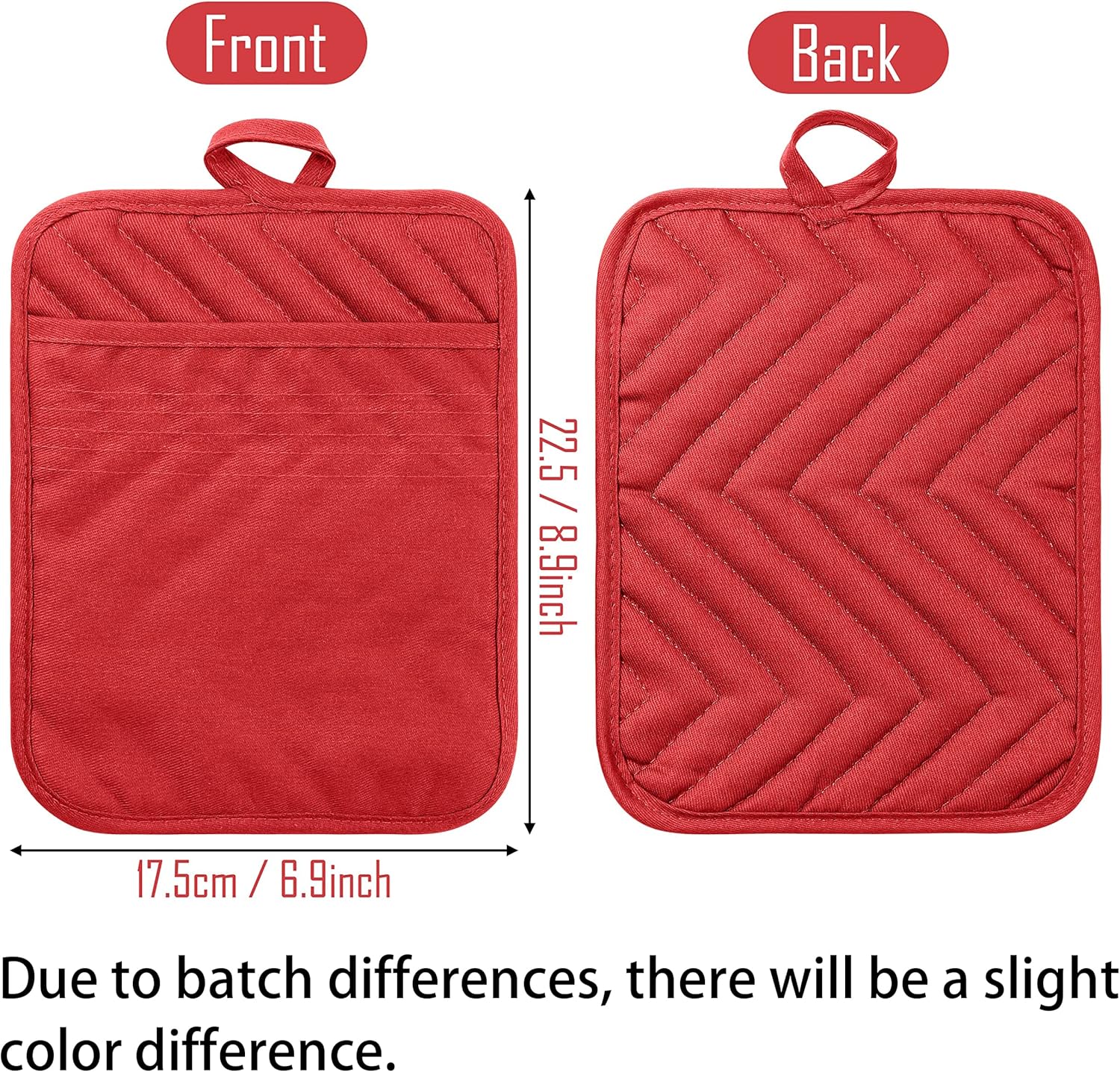- Simple Design and Durable -- GROBRO7 hot pads made of cotton with size 6.9’’ x 8.9’’, red minimalist stylish design with pockets, heat-resistant, machine washable, save your time and energy!