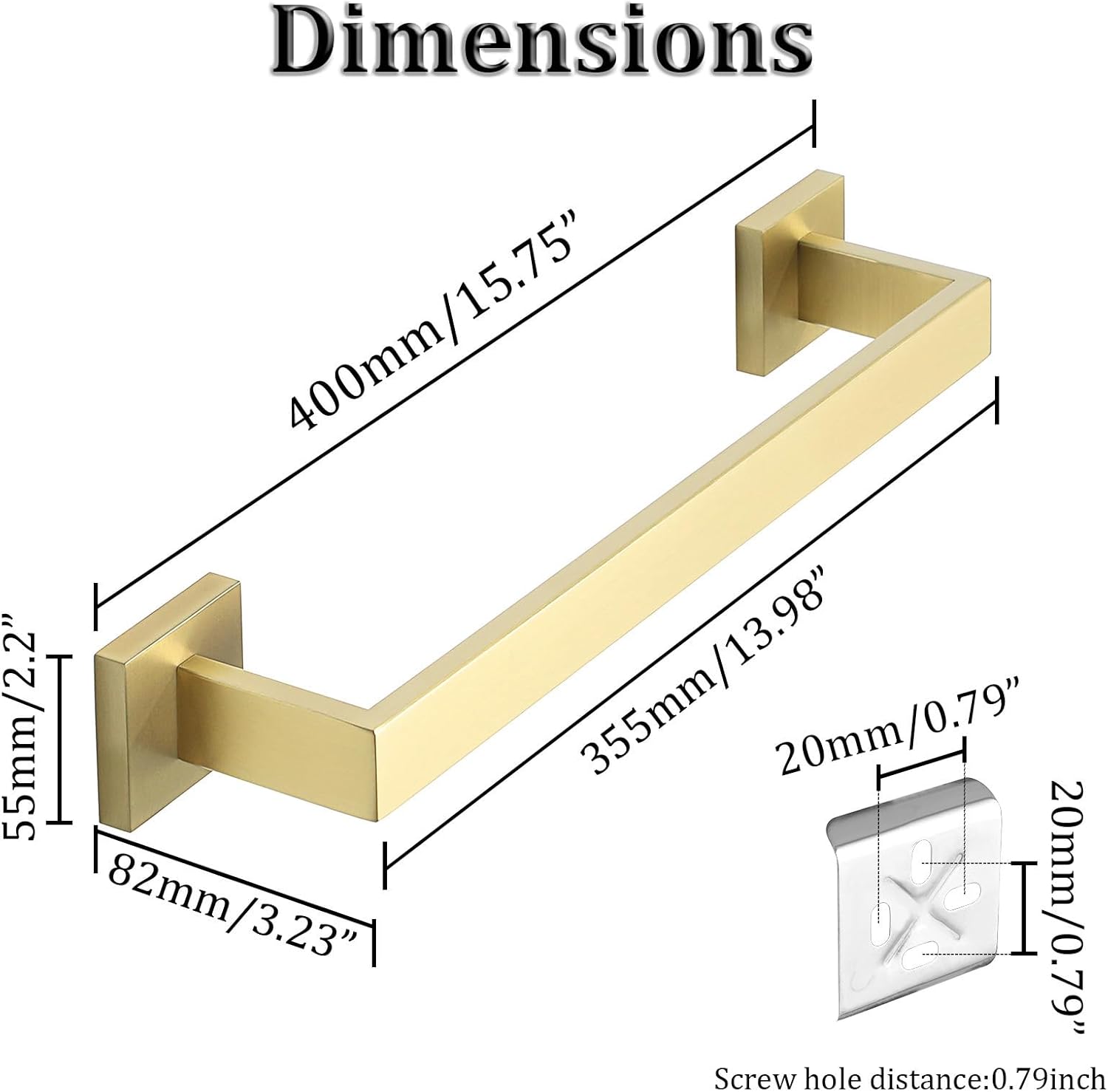 - 【Measure Before Buying】Dimensions 15.75''Lx2.2''Wx3.23''H, Useable Length 13.98 Inch towel hanger. 2.8 Inch Separation Distance from Wall - Enough space for quick drying, hanging towel quickly.No need to fold your towel any more.If you have any questions about the gold towel bar, please feel free to contact me at any time