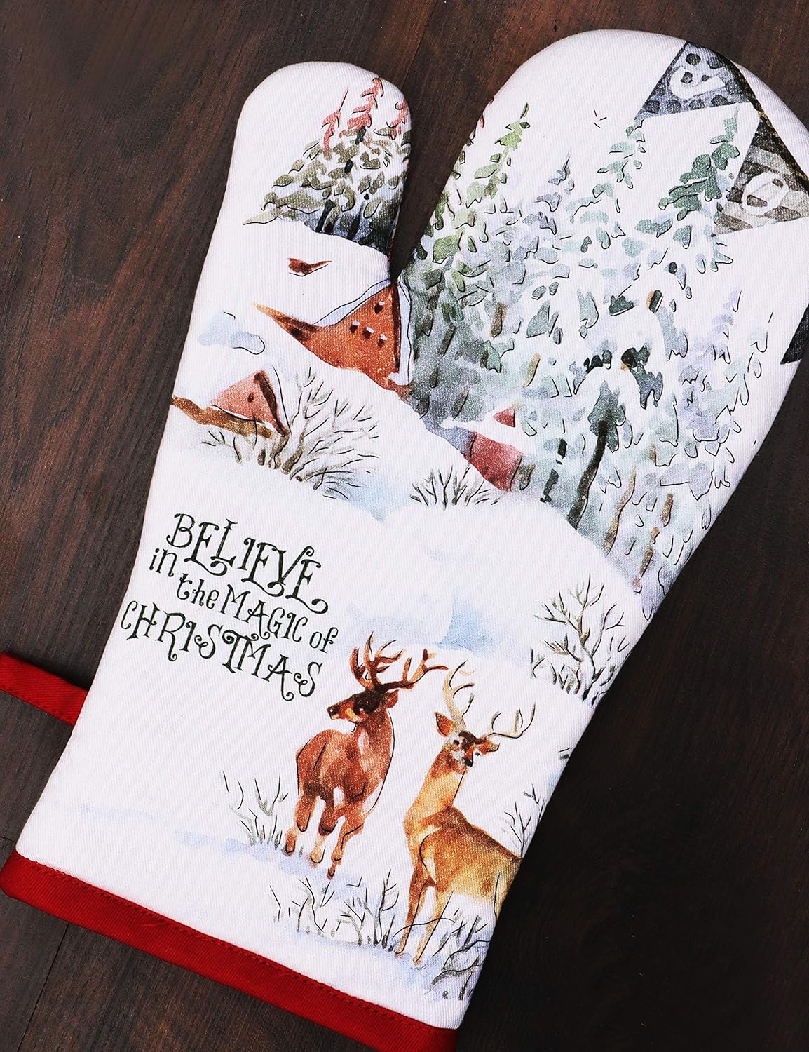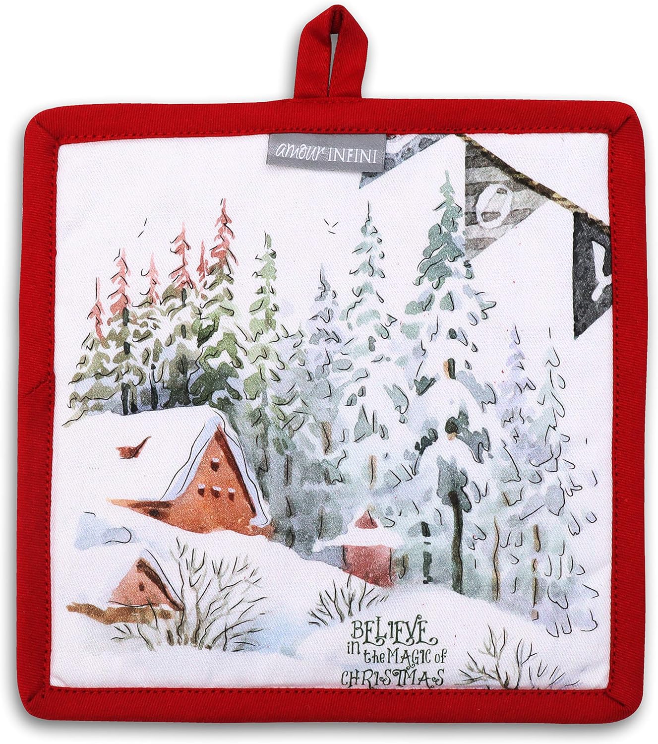 AMOUR INFINI Pot Holders and Oven Mitts 100% Cotton Christmas Winter Heat Resistant Non Slip Washable Set of 1 Oven Mitt and 1 Pot Holder Kitchen Gift Set