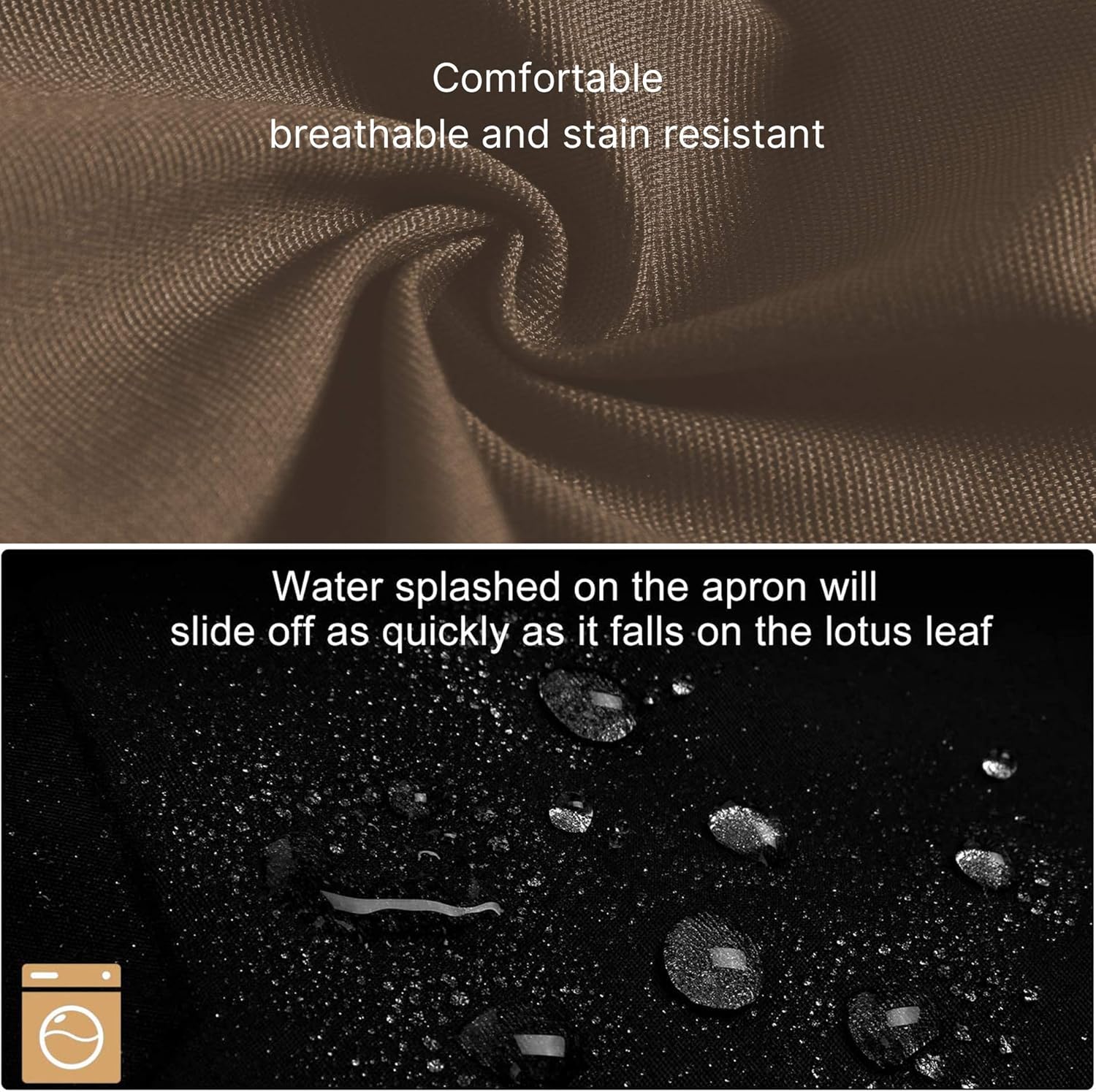 - COZY & Water Drop Resistant - The apron is not only soft, breathable and comfortable to wear, but also has water-resistant feature that enables splashed water to slide off as quickly as it falls on the lotus leaf.