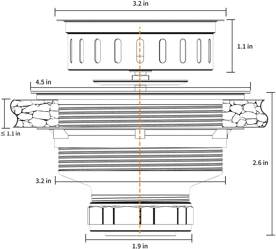 - 3-1/2 INCH KITCHEN SINK DRAIN: Kitchen sink replacement drain fit for most American standard kitchen sinks with universal 3.5 inch drain hole. This kitchen sink drain assembly combines solid construction with ease of use