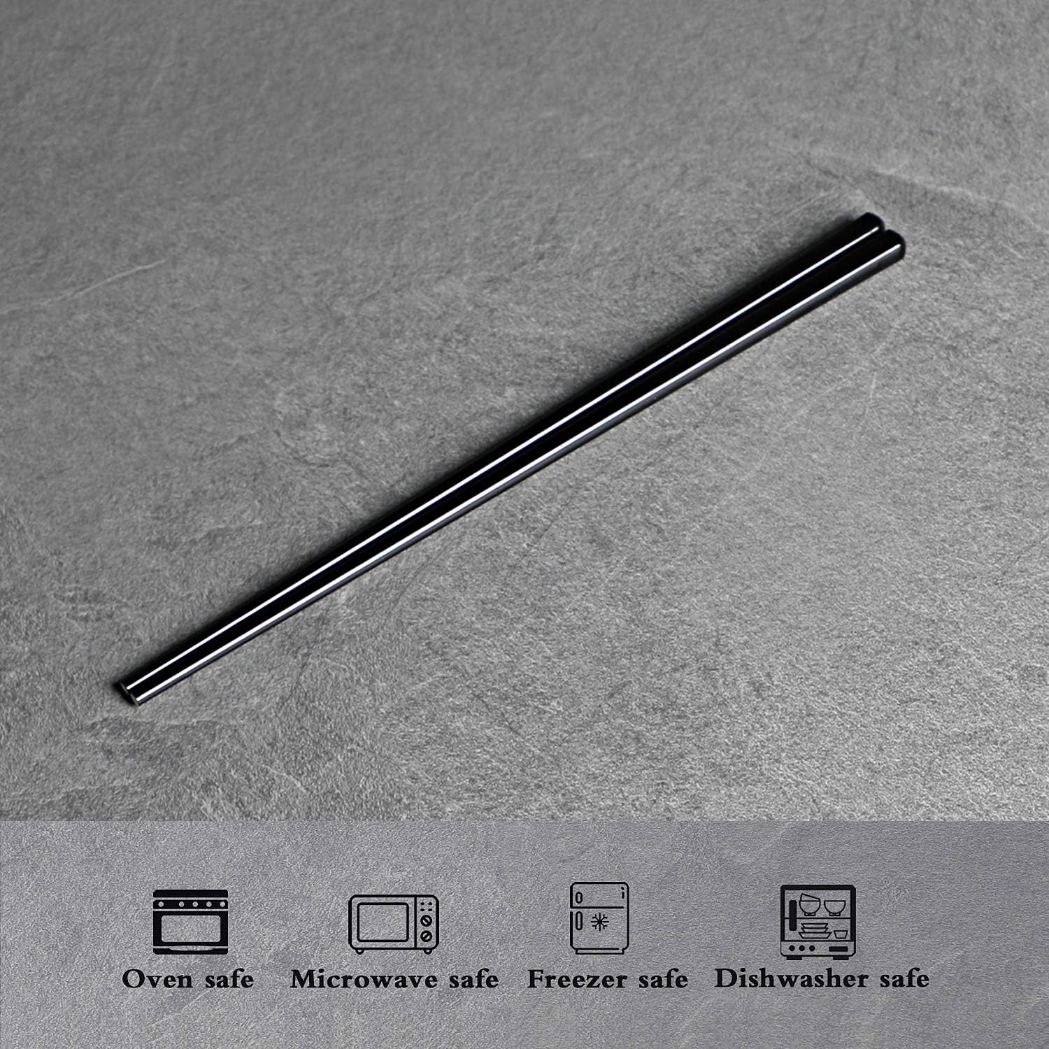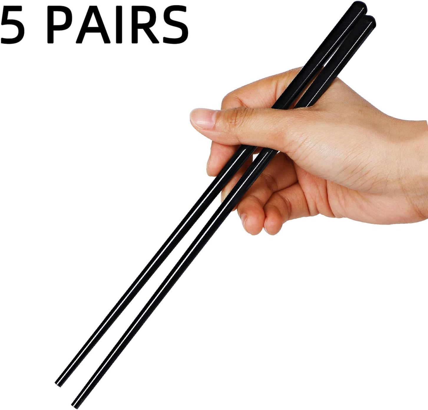 LEETOYI Ceramic Chopsticks Set of 5, Porcelain Chinese Chopsticks Easy To Clean, 9.6-Inch (Black)