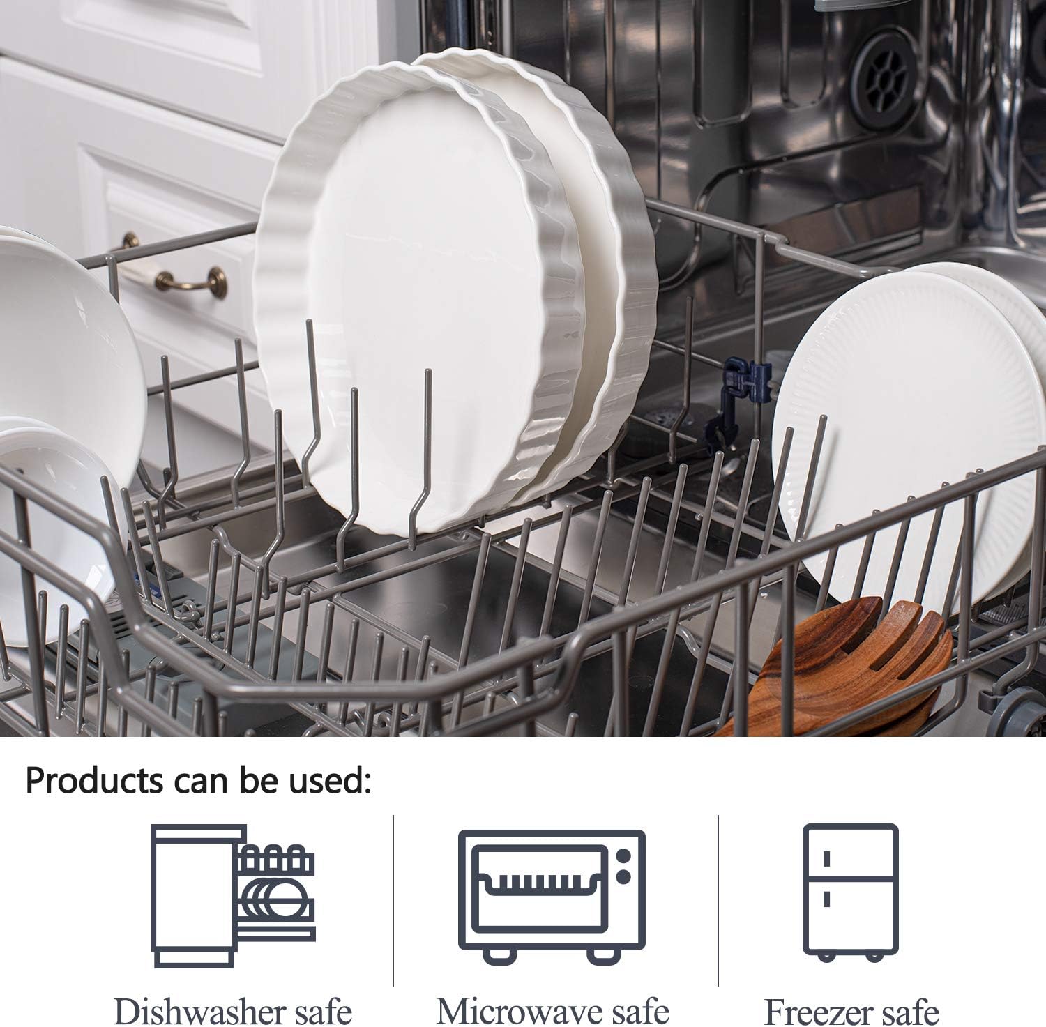 - HIGH QUALITY - Sturdy ceramic pie pan made of white glazed porcelain, safe and odor-free, not chipping and cracking, withstands high temperatures so you don't over or under bake. The freezer, microwave, oven, and dishwasher are safe.