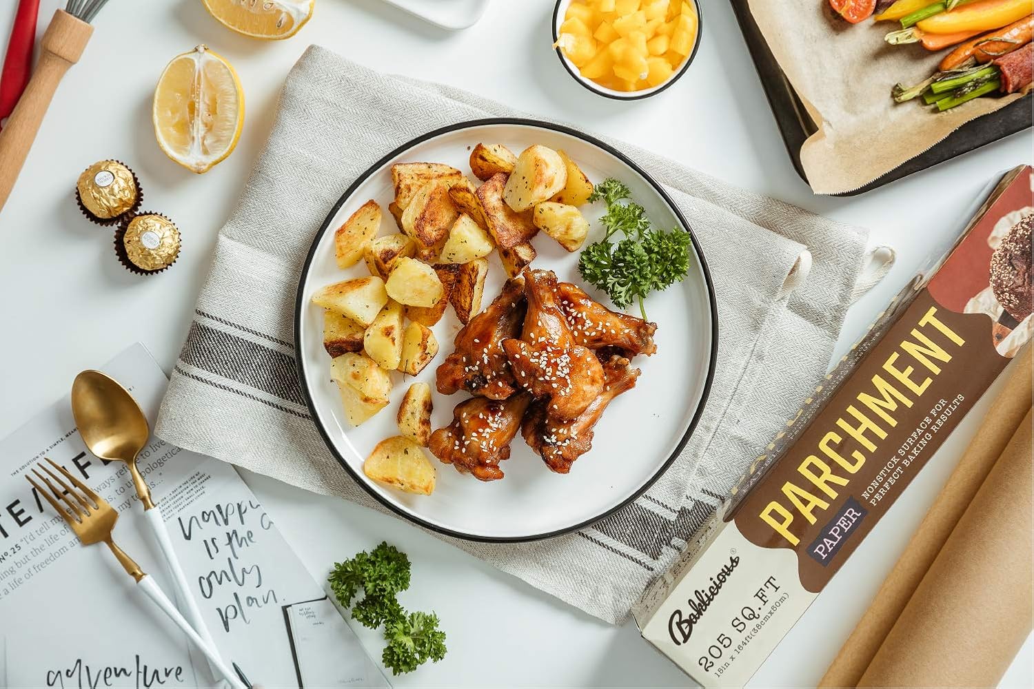 - SUITABLE FOR ANY BAKEWARE: Do you love baking but often bothered by the size deviation between parchment paper and baking tray? Baklicious parchment paper for baking are 15 in x 210 ft, 260 square feet x 2 in total. You can crop any size what you want by using baking paper roll.