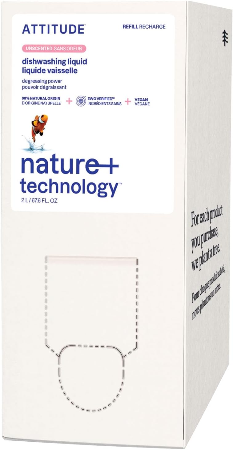 ATTITUDE Dish Soap Refill, EWG Verified, Plant-Based & Vegan Dishwashing Liquid, Naturally Derived, Unscented, 67.6 Fl Oz