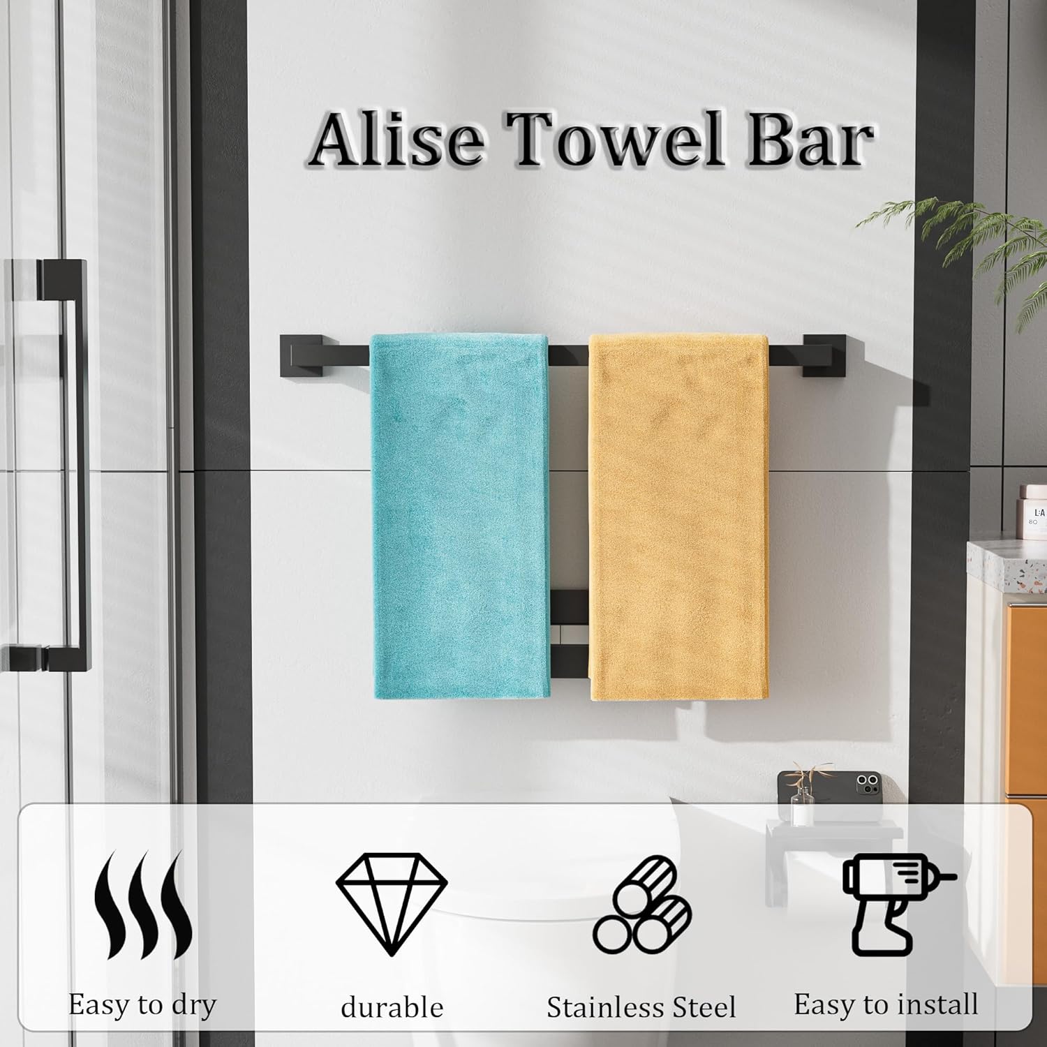 - 【Fashion and Practical Design】This quick dry towel rack made of full square tube, generous and beautiful look, convenient to hang the towel and ensure that the towel is not easy to fall
