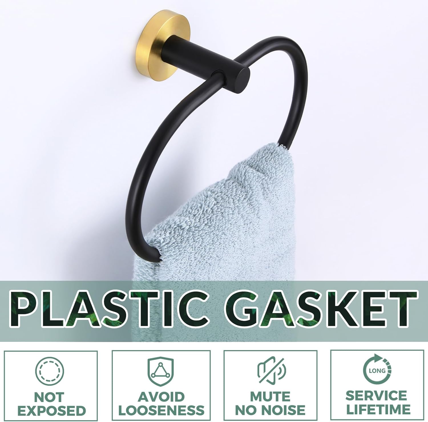 APLusee Black Gold Hand Towel Ring, Stainless Steel Hand Towel Holder for Bathroom Wall Mounted