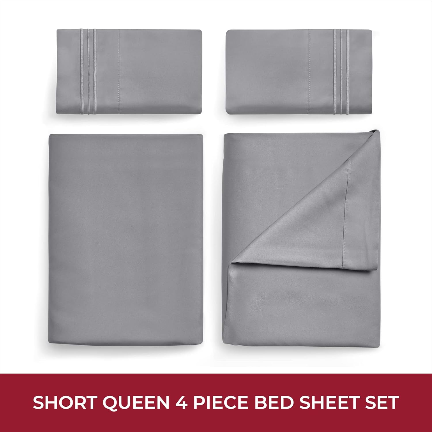 Mellanni RV Short Queen Sheets - 4 PC Iconic Collection Bedding - Hotel Luxury, Extra Soft, Cooling Bed Sheets - Deep Pocket up to 10 inch (RV/Short Queen, Gray)