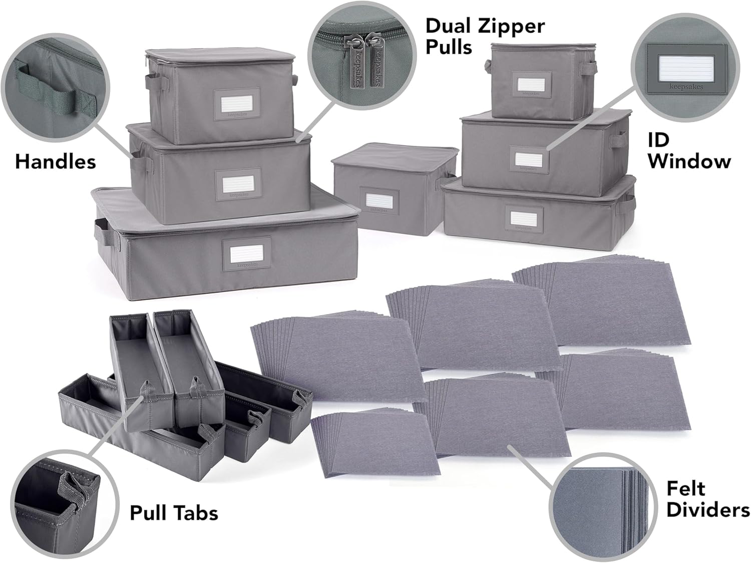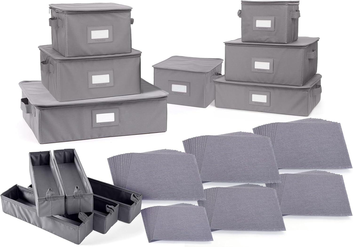 Covermates Keepsakes Dish Storage Box - Stackable, Reinforced Handles, China Storage, Graphite