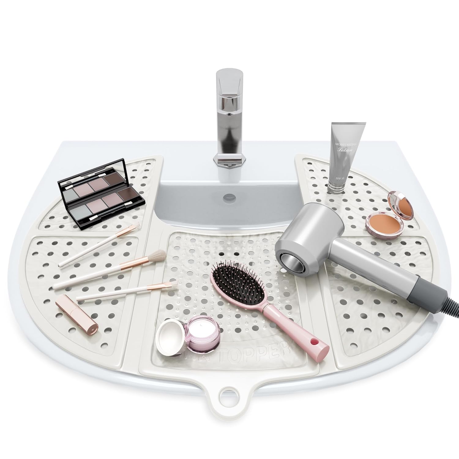 Sink Topper Bathroom Counter Cover & Storage Saver, Foldable Silicone Mat for Hot Tools, Hair Styling & Makeup, Beauty Brush Cleaning Mat, RV Camper Sink Cover & for Small Spaces (Standard Pearl)