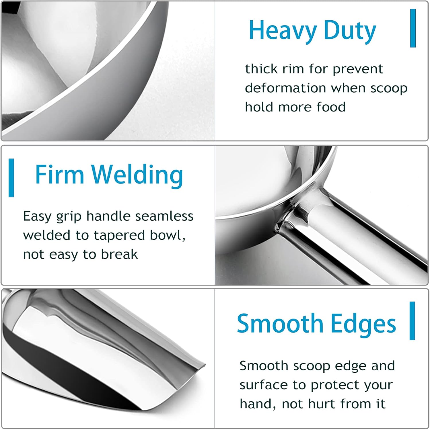 P&P CHEF Food Ice Scoop, Stainless Steel Scoop, Metal Candy Popcorn Flour Utility Scooper for Wedding Party Bar Kitchen Bath, Heavy Duty & Dishwasher Safe, (24oz, 2Pcs)