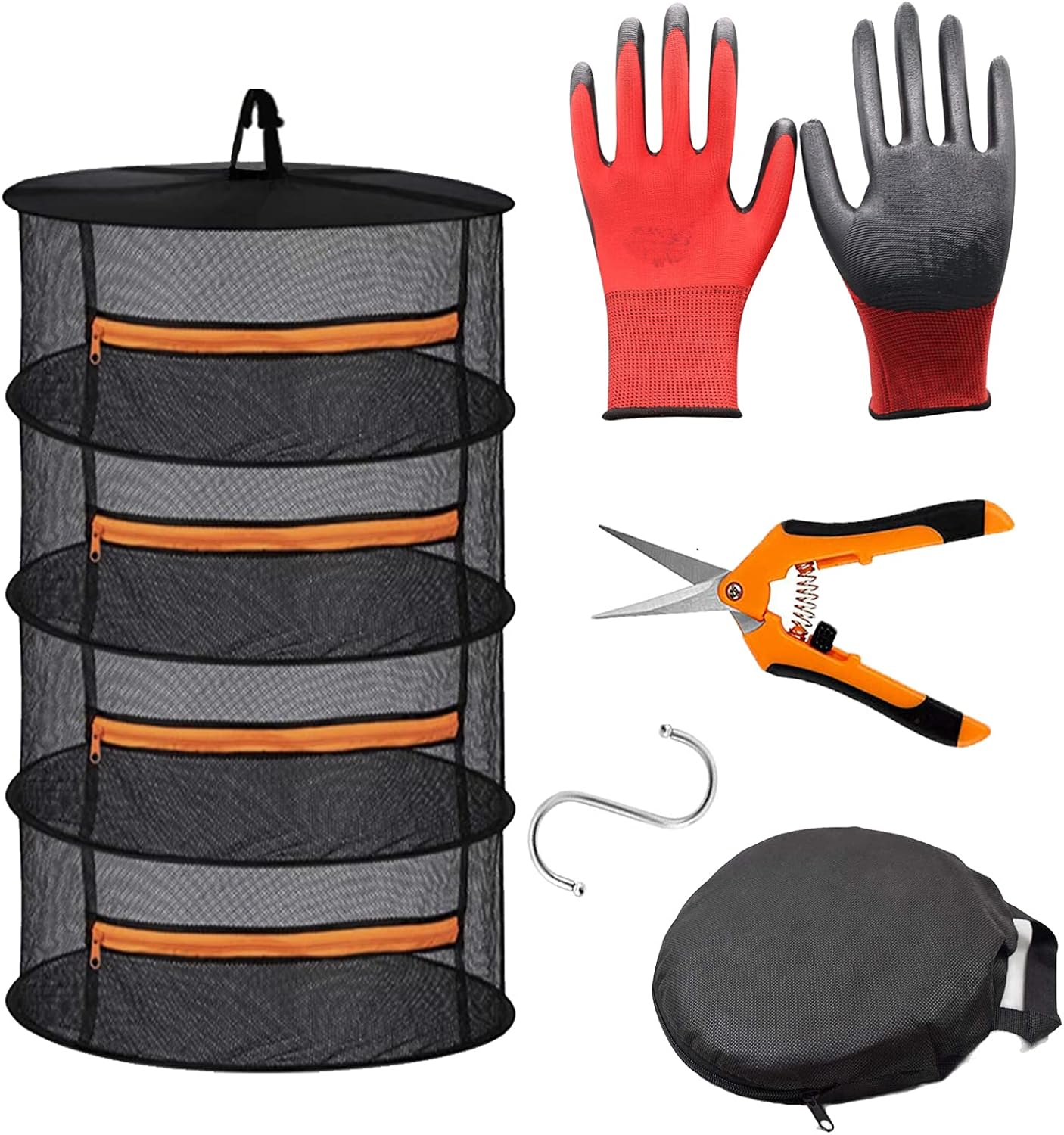 2ft 4 Layer Mesh Hanging Herb Drying Rack Dry Net Plant Drying Rack Net with Orange Zippers Can Dry Plants, Herbal,hanging dryer Hanging Mesh ( Band Garden Scissors)