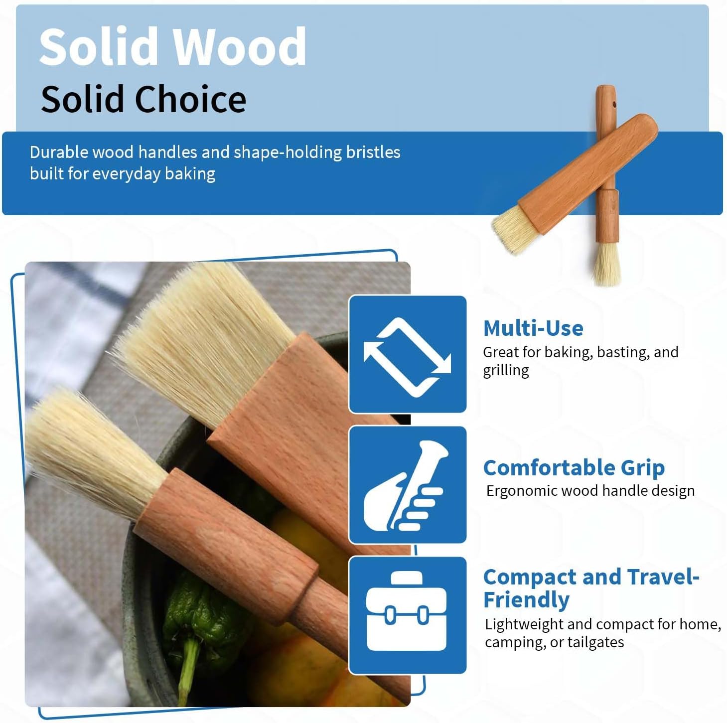 - Sturdy Wooden Construction for Long-Lasting Use: Each brush in Angel’s Peel lounge pastry brush set features a solid wood handle that resists cracking, bending, warping, and enduring daily use. The premium bristles hold their shape, making these bbq brushes perfect for the consistent application of sauces, glazes, and oils while baking or grilling.