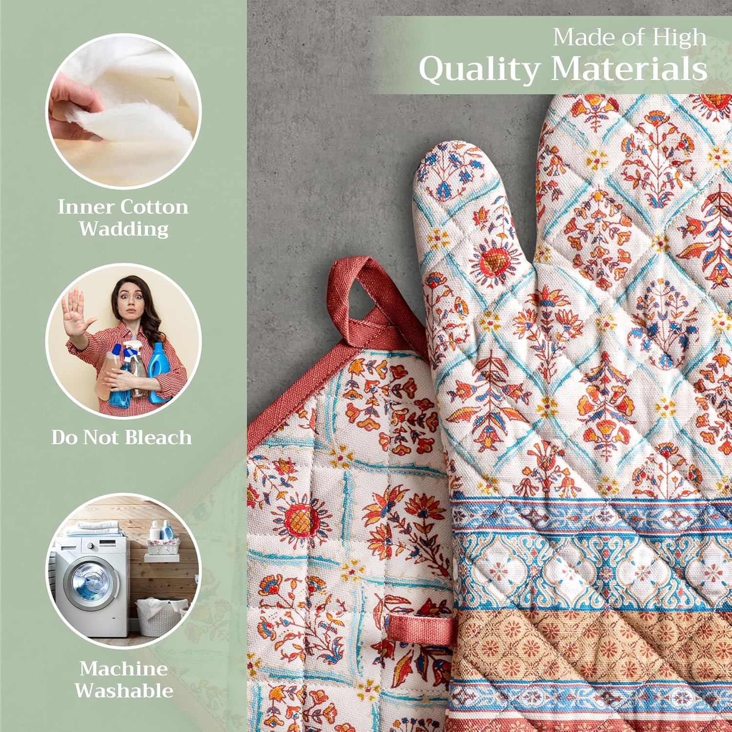 - Premium Quality: Crafted from quilted 100% cotton, this heat resistant oven mitt and pot holder set offers comfort, flexibility, and protection from hot cookware. Ideal cotton oven mitts for daily kitchen use and cooking safety