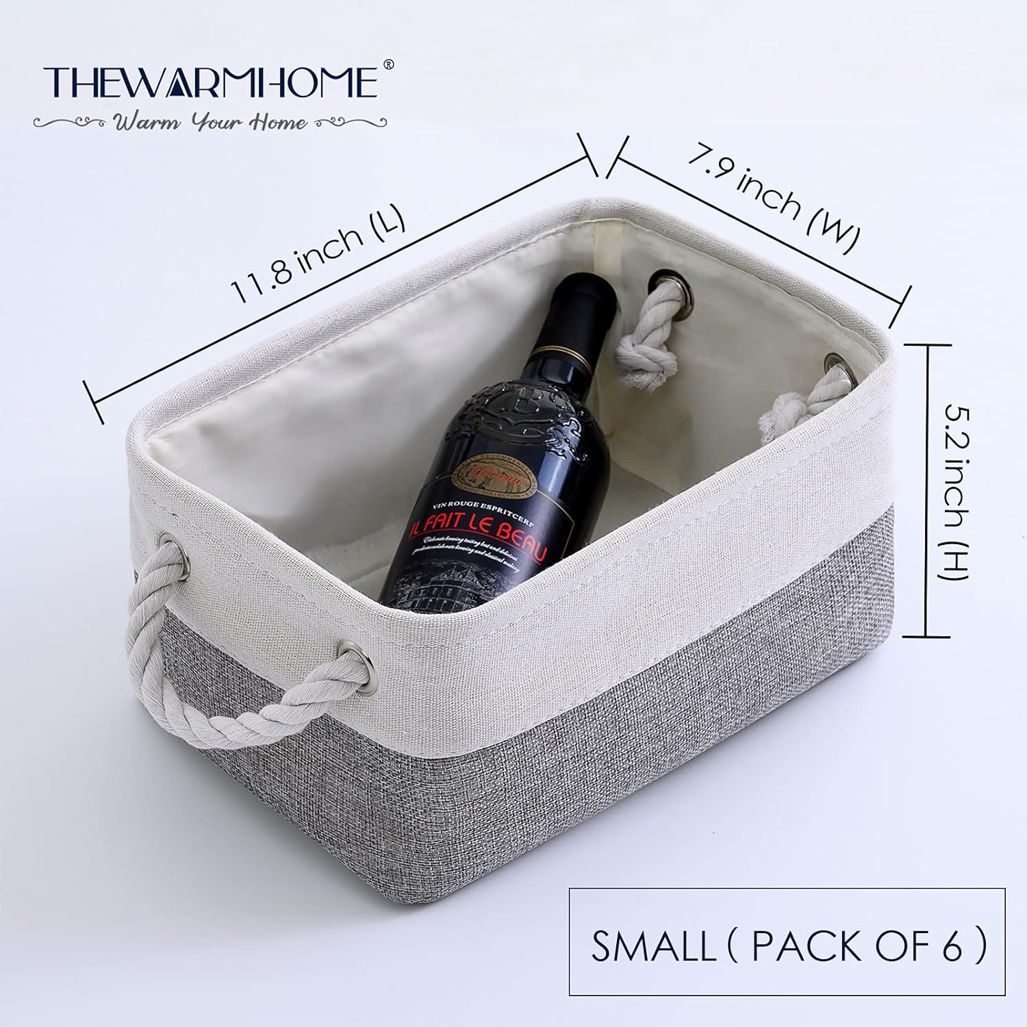 - SMALL BASKETS SETS& PRACTICAL: 11.8”L x 7.9”W x 5.2”H, TheWarmHome storage bins provide a solution to most needs: organizing and storing baby products, clothes, shoes, kid’s toys, pet products, toiletry storage, laundry clothes, towel, blanket, bedsheet, sport gears, tissue,hats,scarves,socks,keys or other small items.can be used in bedroom, living room, study room,rest room,bathroom, kitchen, office, shelf, closets and cabinets.excellent choice for keeping your space nice, tidy and organized