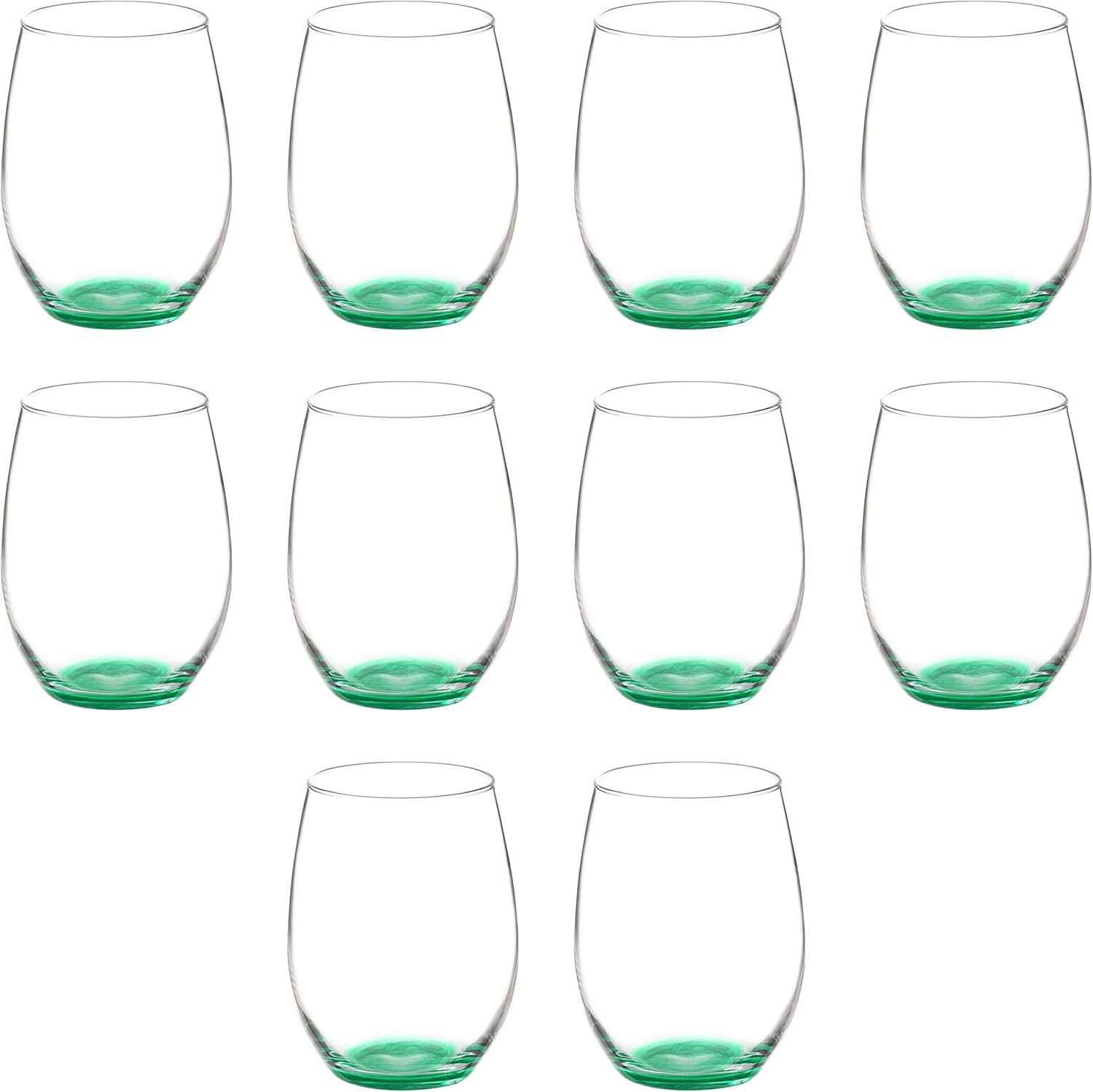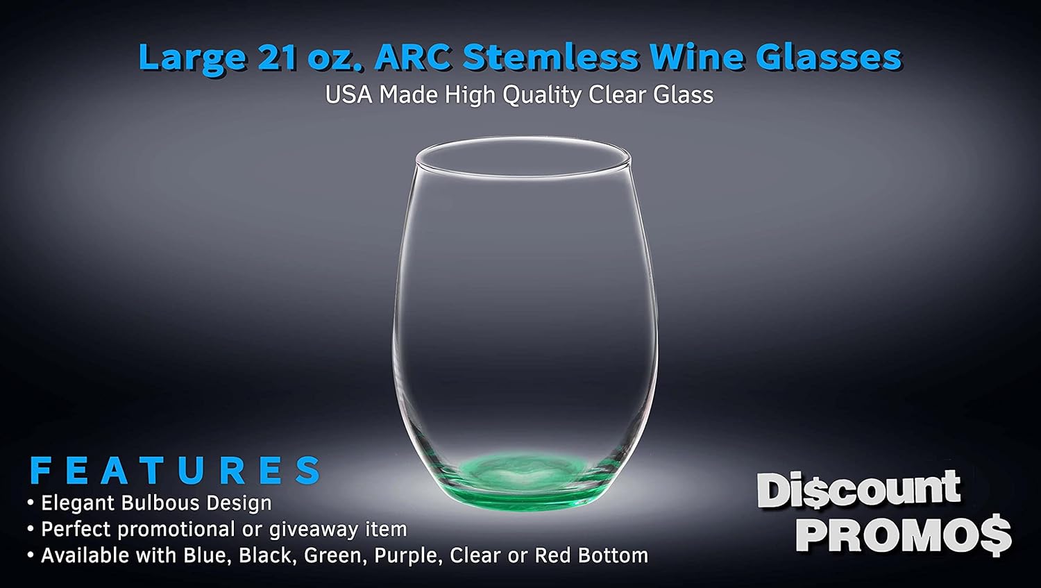DISCOUNT PROMOS 10 ARC Stemless Wine Glasses Set, 21 oz. - Chardonnay, Cabernet, Merlot, Sauvignon - Green
