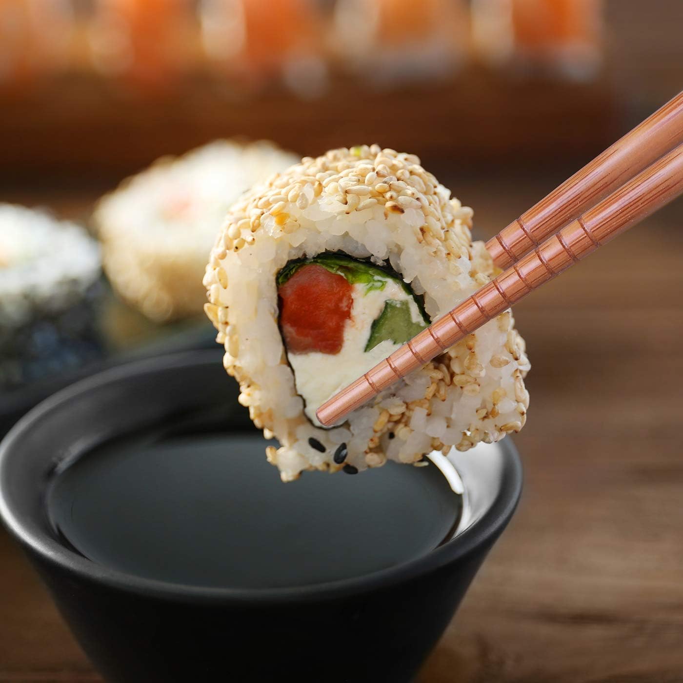 Antner 10 Pairs Natural Bamboo Chopsticks Japanese Style Reusable Chop Sticks, Dishwasher Safe Chopstick Set, 8.8 Inch/22.5cm