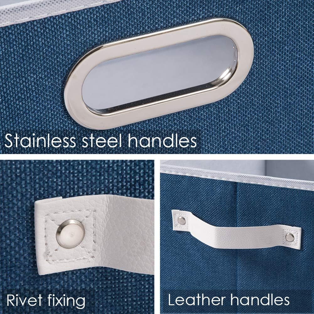 PRANDOM Fodable Storage Bins for Closet [3-Pack] Decorative Fabric Storage Baskets Cubes with Leather/Metal Handles for Shelves Bedroom Living Room Royal Blue (11.5x8.5x6.7 Inch)