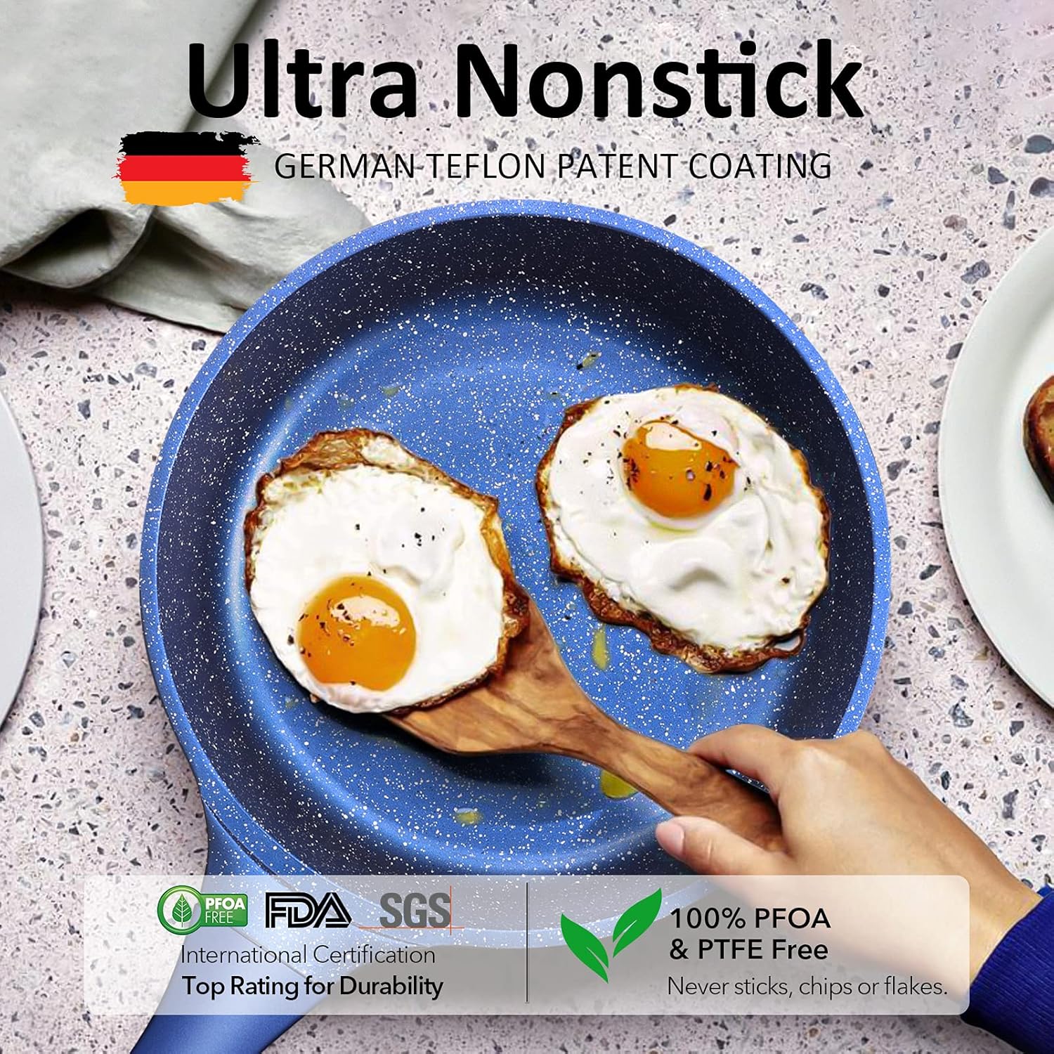 Ailwyn 8" Nonstick Small Frying Pan with Lid - 8 Inch Nonstick Skillets with USA Blue Gradient Granite Derived Coating