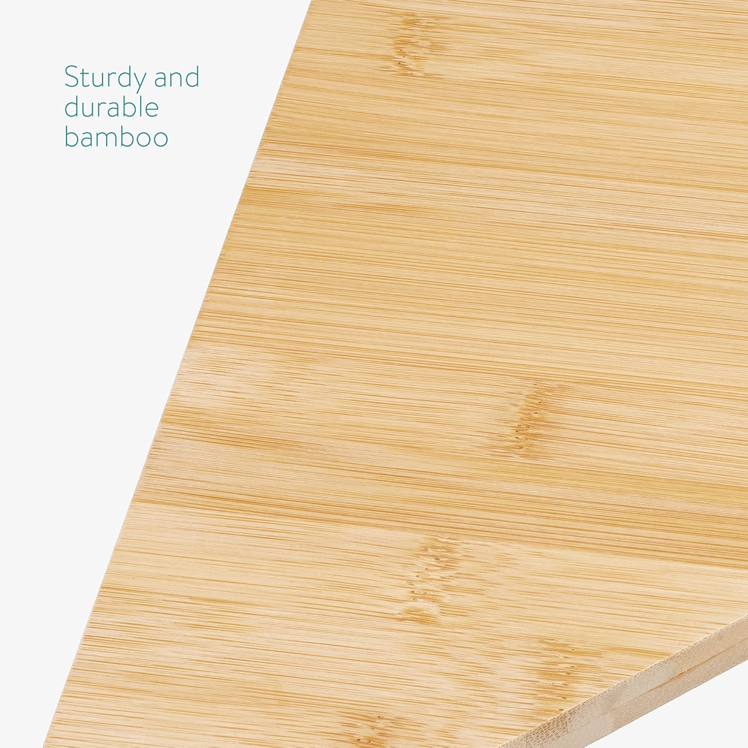 - OPTIMIZE STORAGE: Bring order to a cluttered corner by adding an extra level of storage space with this elegant bamboo shelf. Fits neatly into corners on work surfaces and counter tops, tables and desks, or inside cupboards and kitchen cabinets.