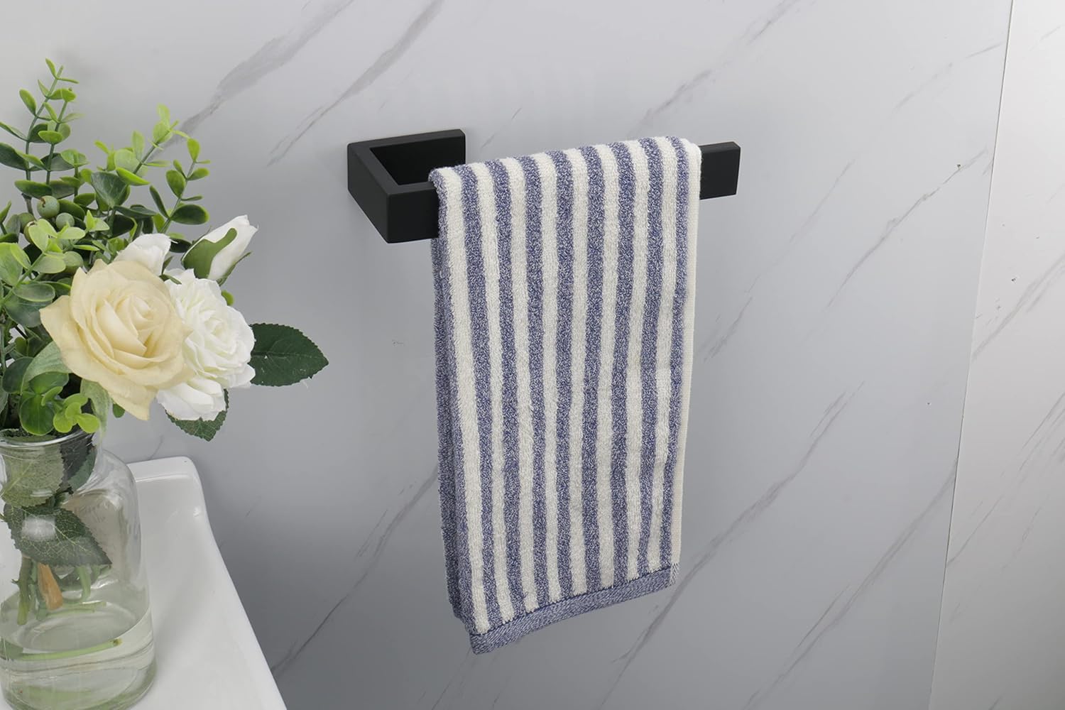 - PREMIUM 304 THICKEN MATERIAL: Very heavy duty 9IN hand towel holder, it makes of 304 stainless steel thicken material matte black finished, Never rust. We care about every details, The welding part of the product is polished by multiple processes, making it seamless and smooth will not hurt your goods