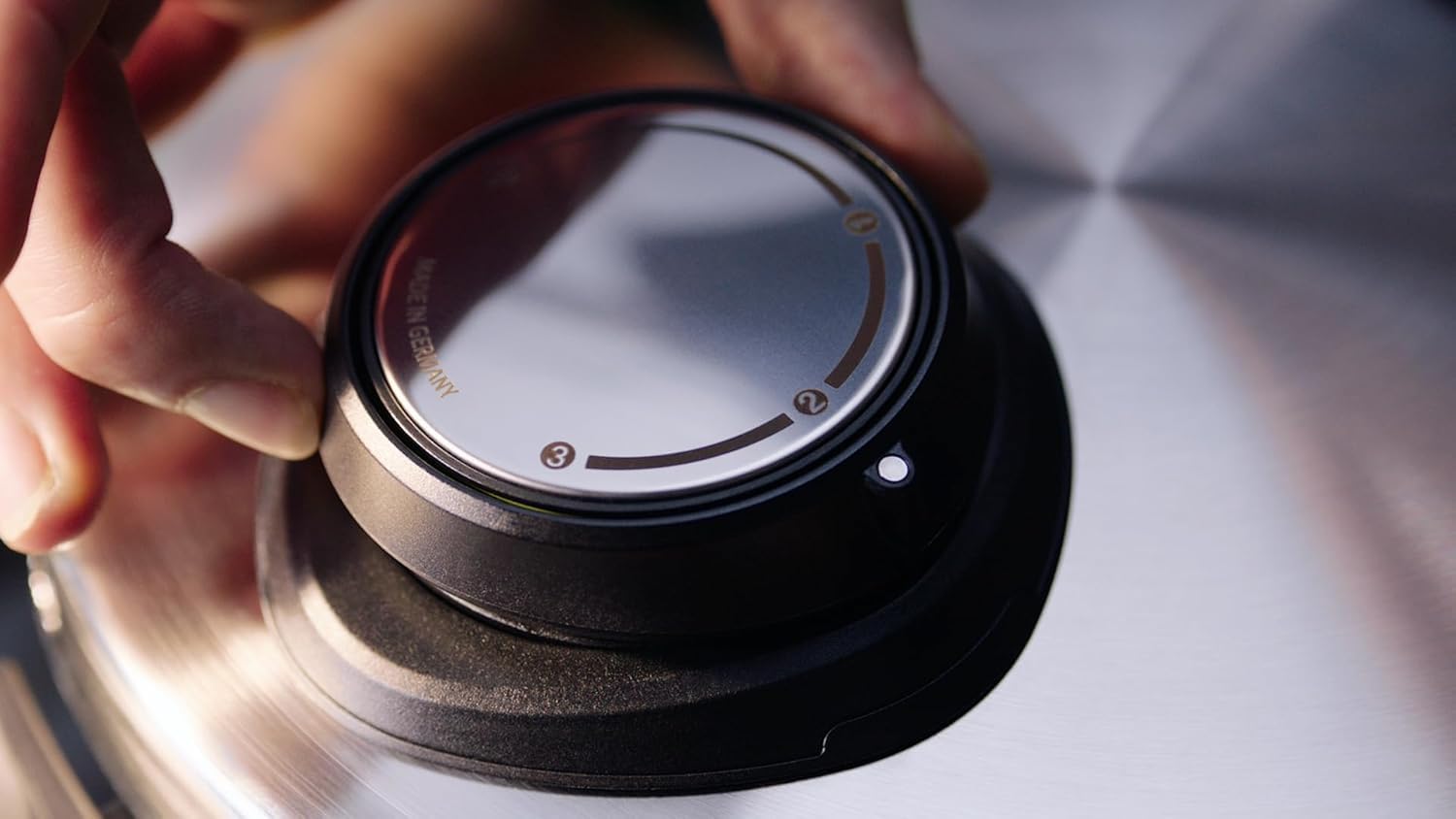 - Safety: With the pressure release feature at the pressure indicator and the control button at the side of the safety handle, pressure can easily be released as needed. The Locking indicator switches audibly (click) from red to green once the pot is correctly and securely sealed.
