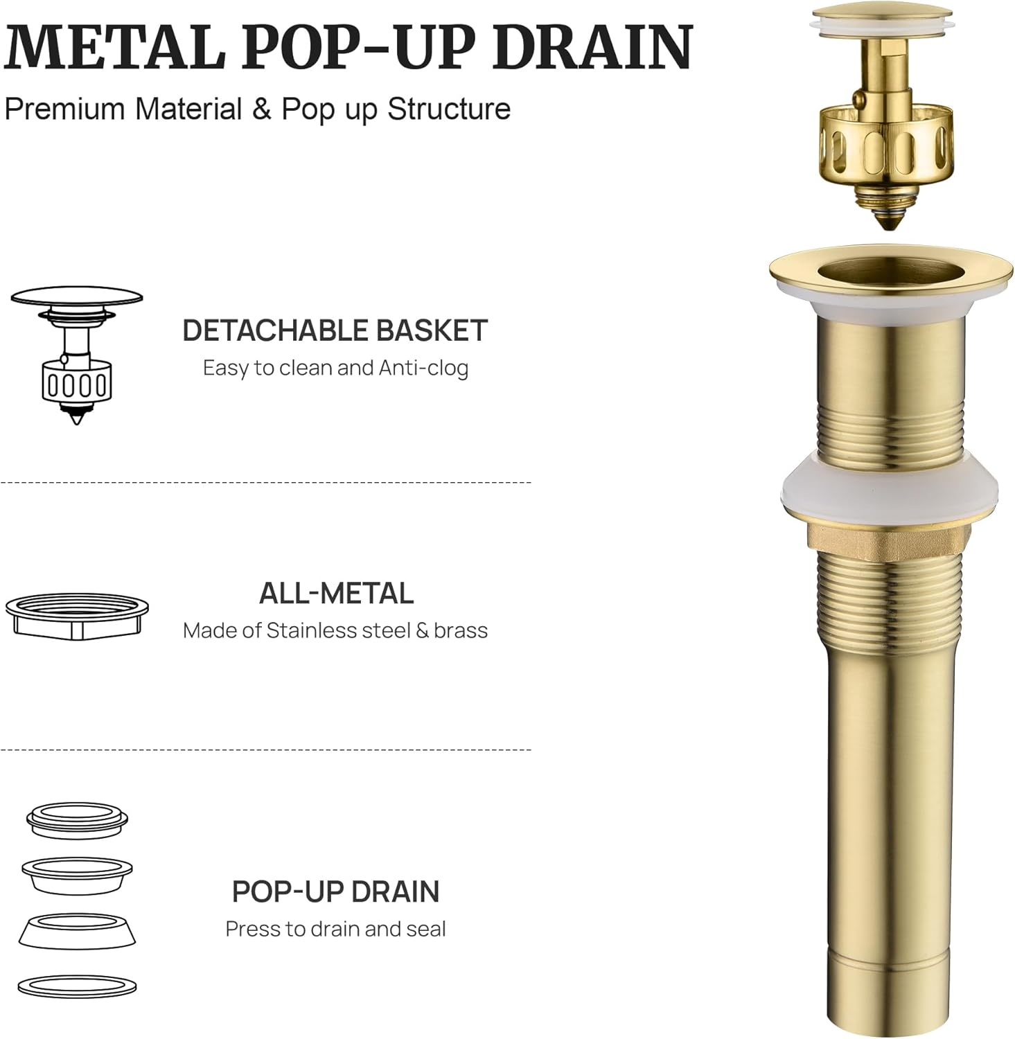 - HIGH QUALITY: Metal quality sink drain stopper for you, It is well made of high quality brass and stainless steel, all of the accessories are of the highest quality