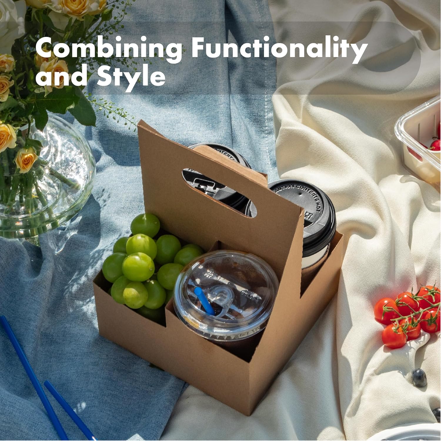 - Durable Material: Made from 100% recycled, moisture-resistant kraft paper cardboard, our drink carrier supports sustainable practices without compromising on quality. It offers excellent stability and balance, protecting against leaks and messes, and is perfect for both hot and cold beverages.